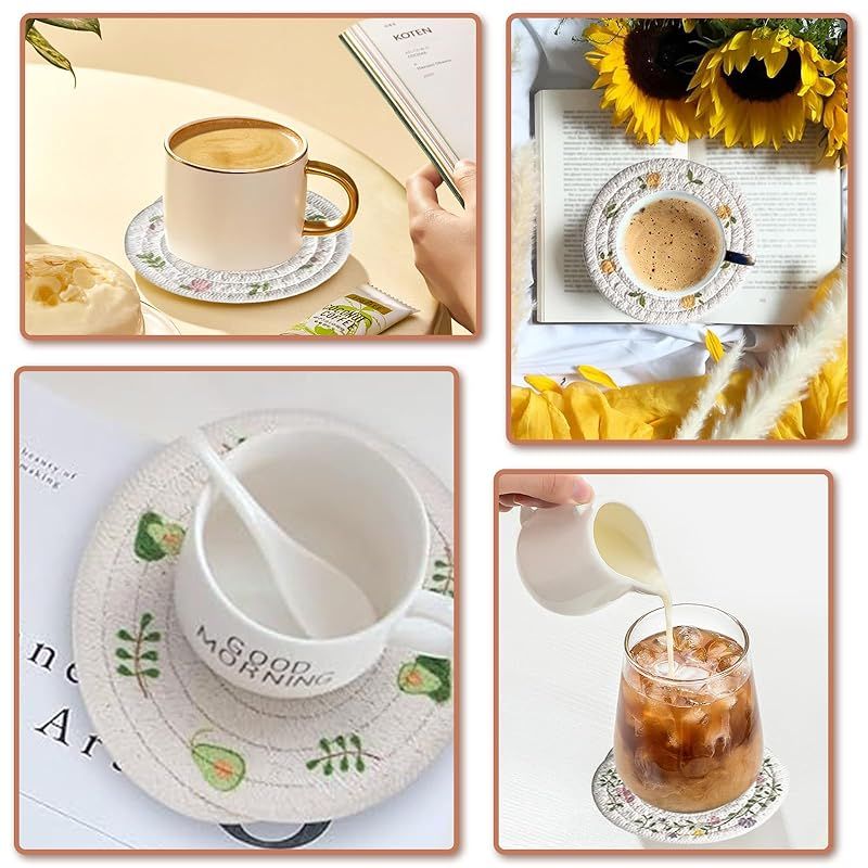 【高品質の素材】カップコースターは高品質の綿材質を用いて作られ、丈夫で耐久性があり、良い断熱性能を提供、強力な吸水性、冷たい飲み物にも温かい飲み物にも使える。ソフトな素材なのでコップを置いたときも静かです。