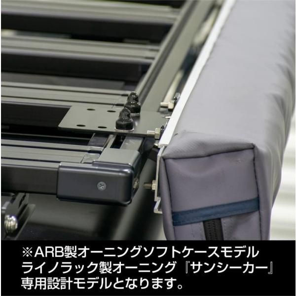 ●取付可能オーニング:ARB製(ARBオーニングソフトケース)、ライノラック製(サンシーカーオーニング)