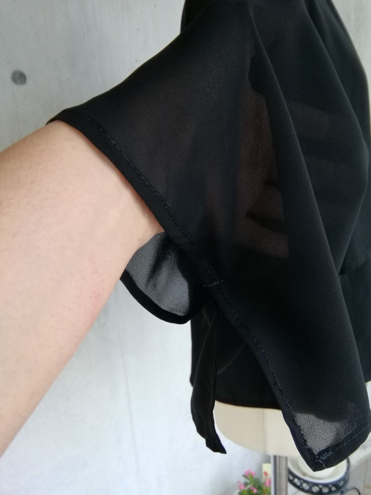 ケープ部分はシフォンを使用し、程よい透け感、軽く涼しい素材です。