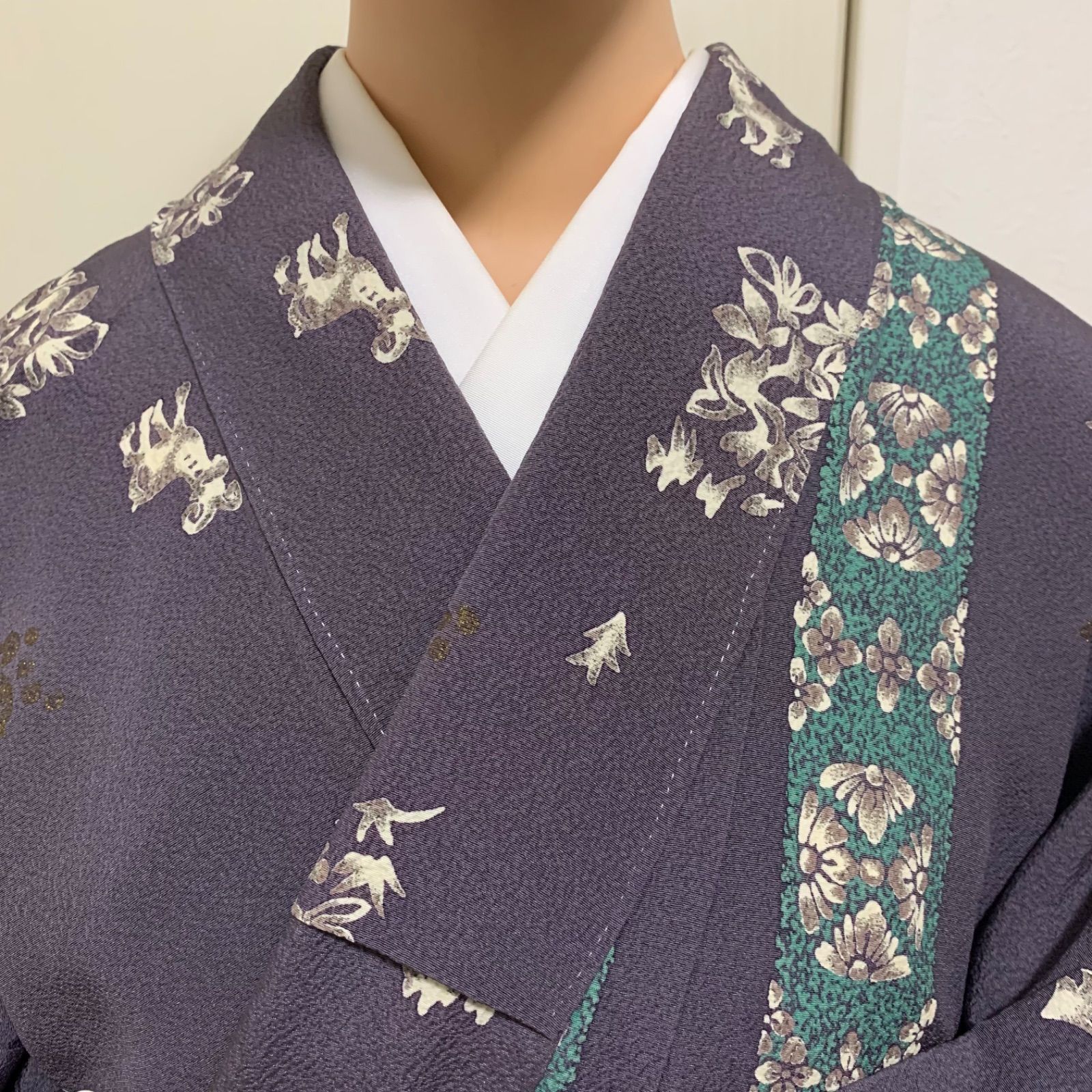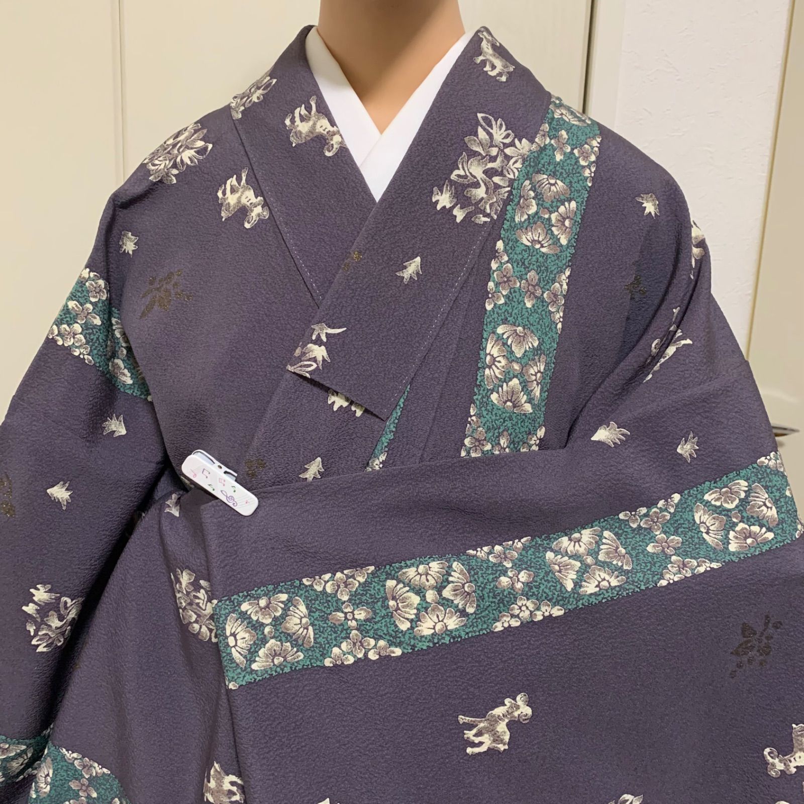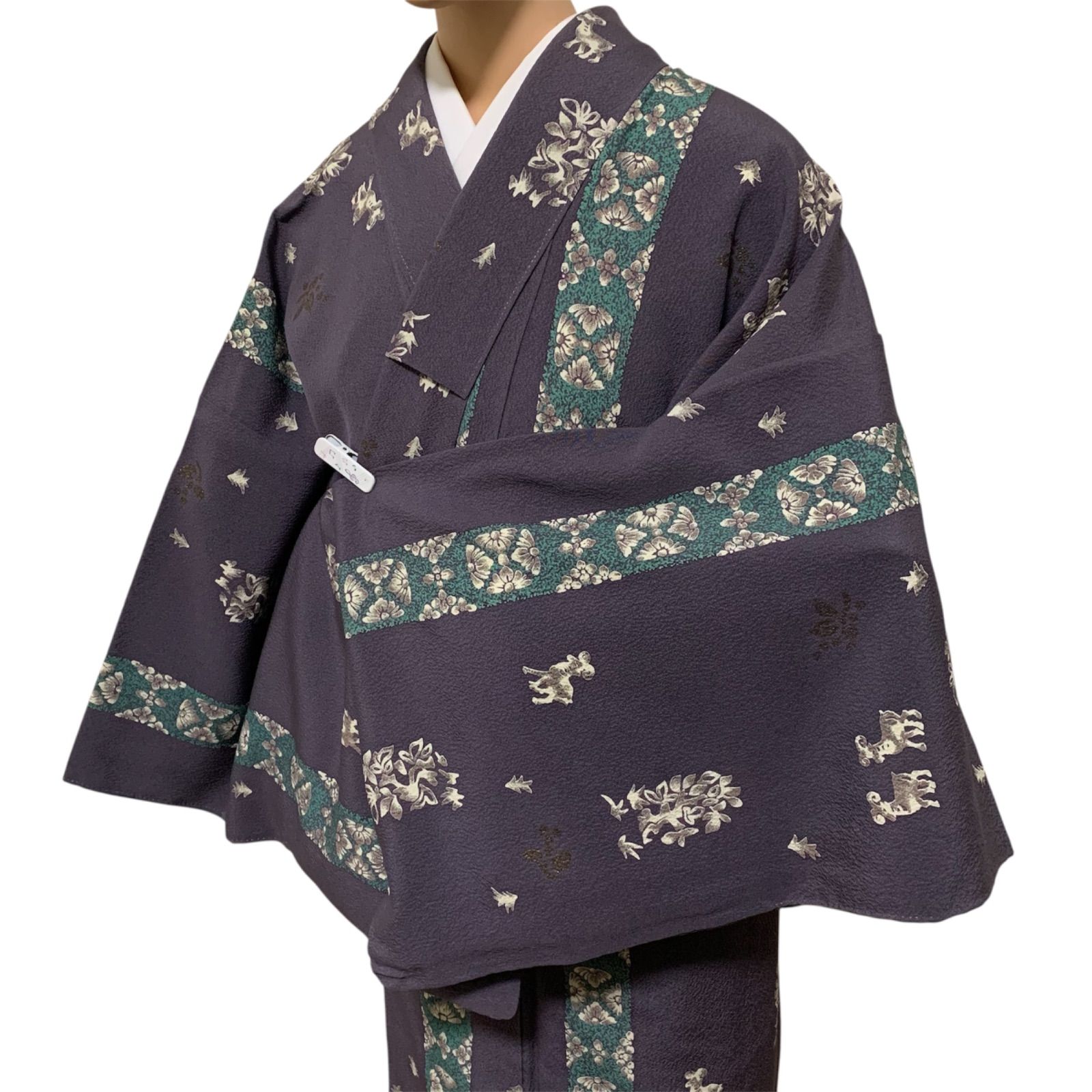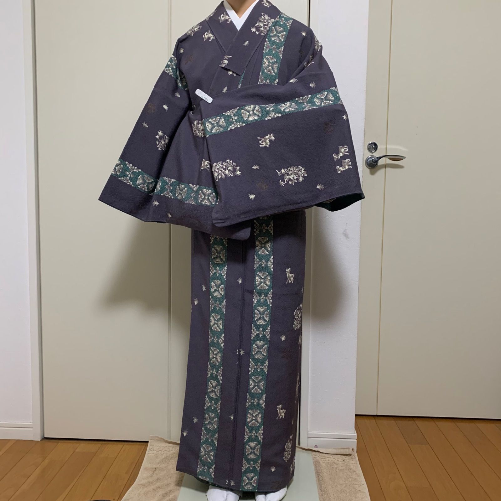 小紋 着物 袷 絹 裄65.8センチ 身丈(背)154センチ レディース