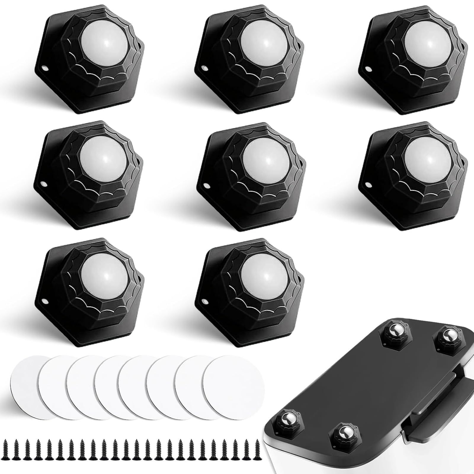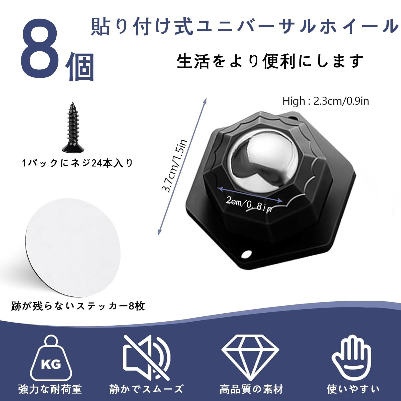 粘着テープ式 ナイロン車輪ボール ボールキャスター スムーズに360度回転 家具用キャスター ミュート 荷重力が強い 耐荷重約200kg 家具移動 ミニキャスター8個セット(ブラック)