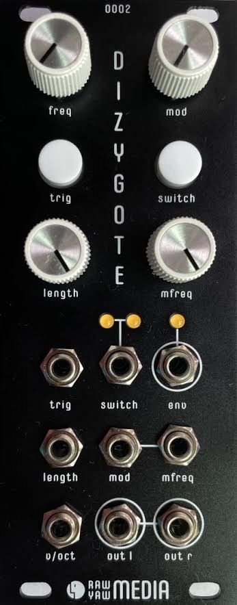 dizygote は、エンベロープ・ジェネレーターを内蔵した a 側/b 側デジタル・オシレーターです。 a面は方形波形と周波数変調でハーモニーを構築します。 b 側は位相変調で正弦波を歪めます。