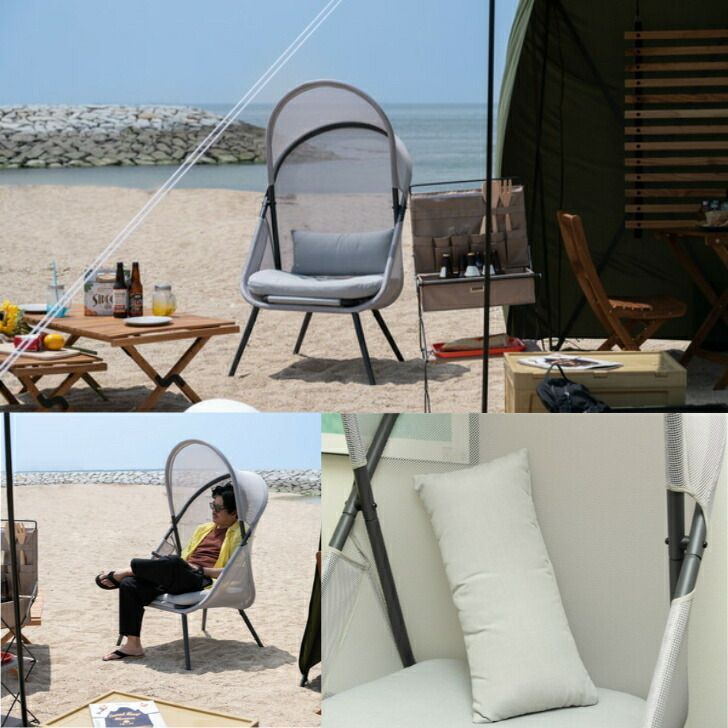 メッシュ素材と日よけのルーフ付きで屋外でも快適