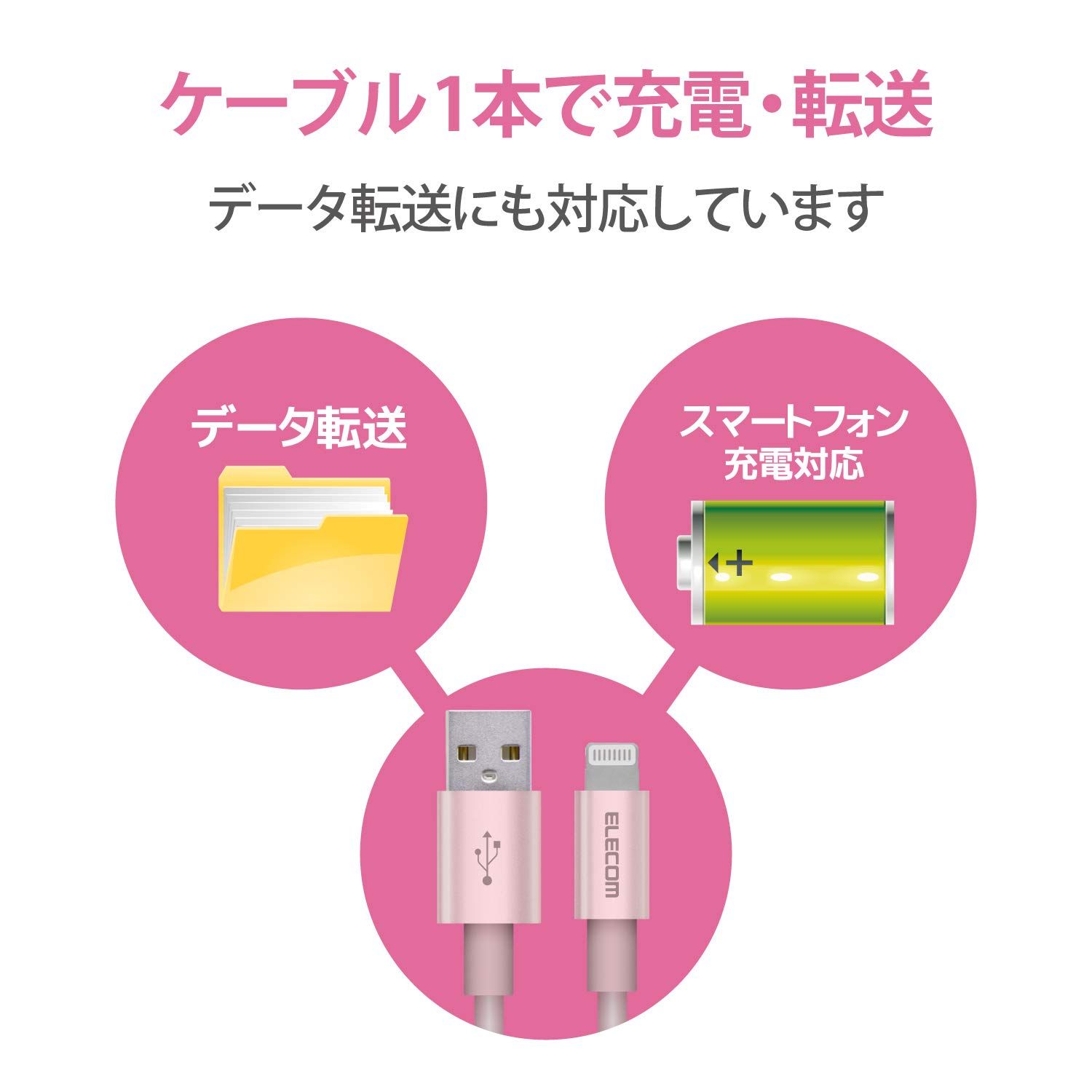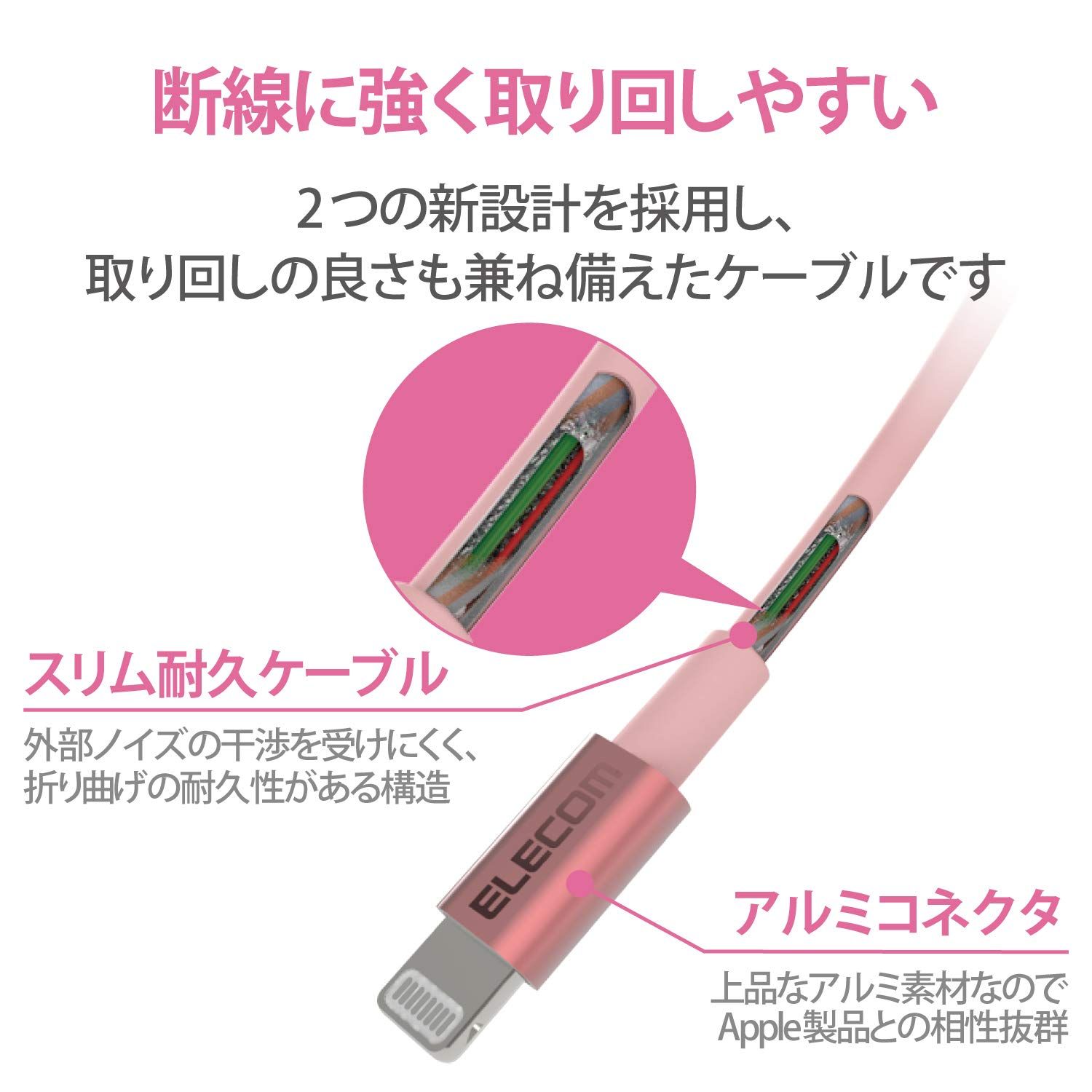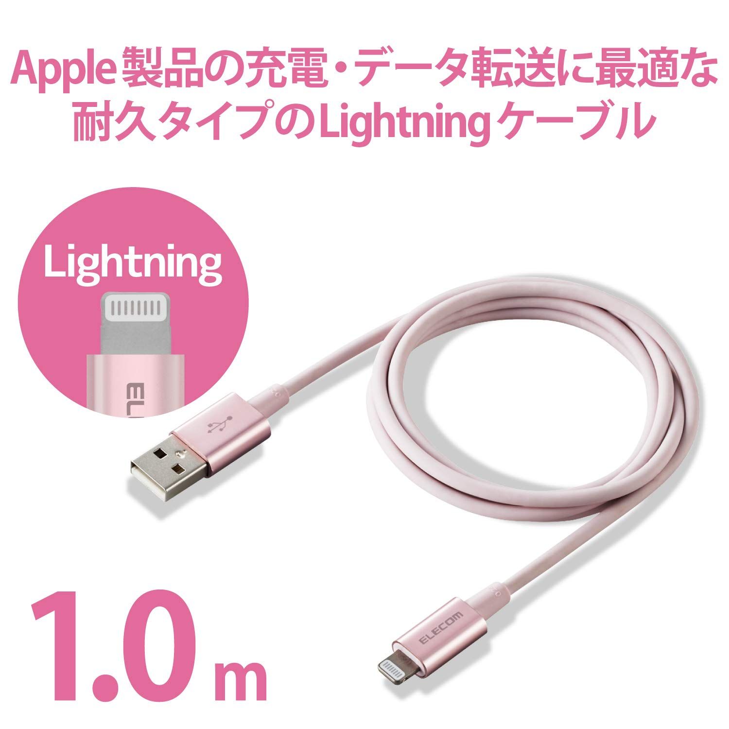 エレコム Lightningケーブル ライトニング iPhone 充電ケーブル アルミコネクタ 準高耐久 【 iPhone 13 / 12 / SE (第2世代) 対応 】 Apple認証品 1m ピンク MPA-UALPS10PN
