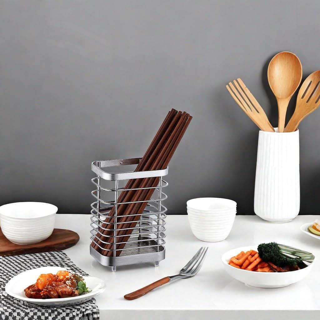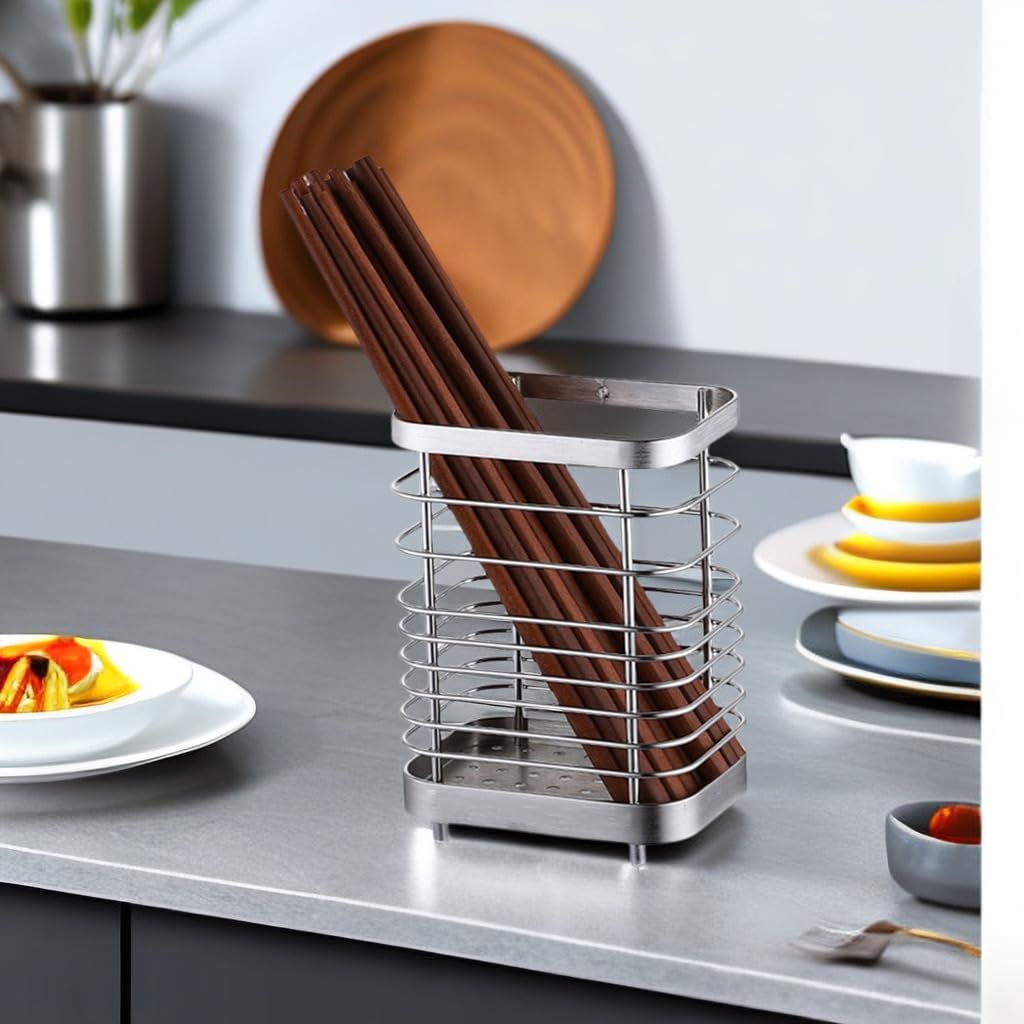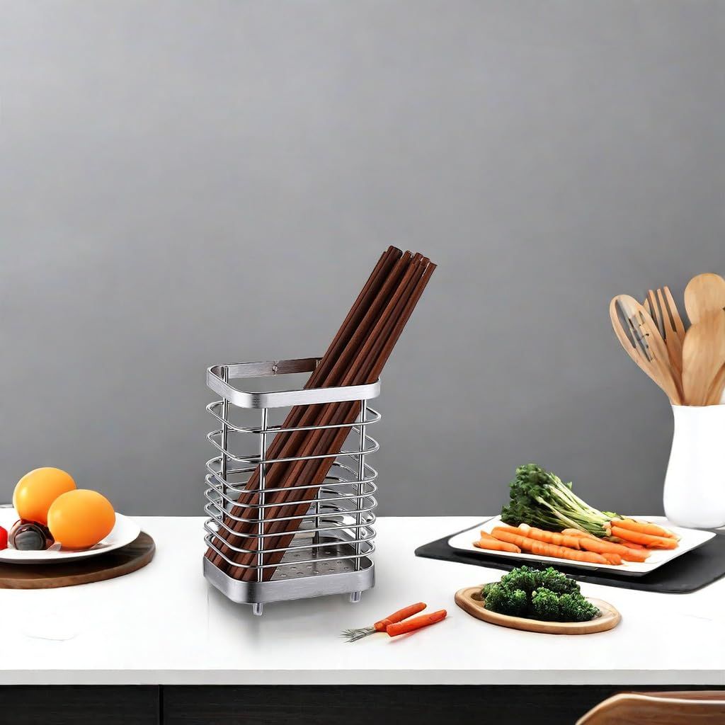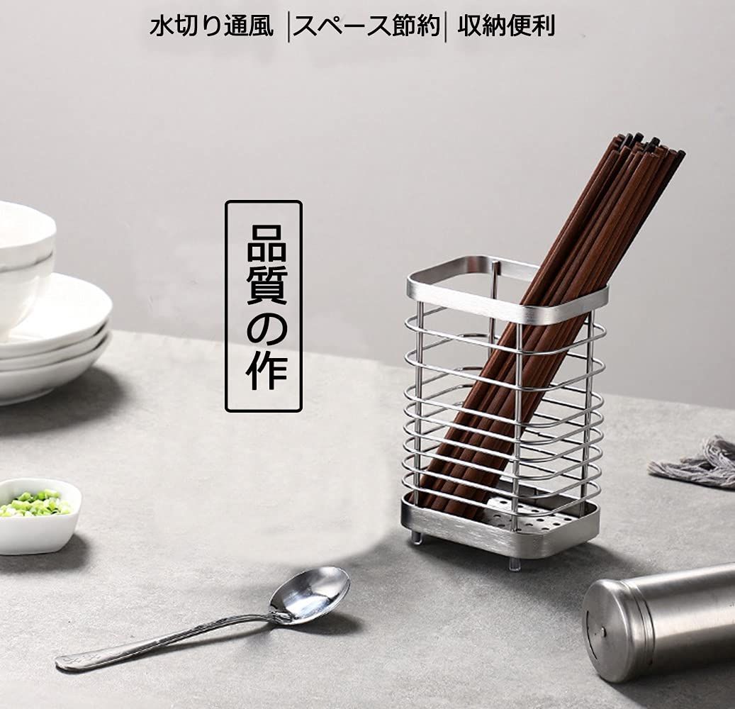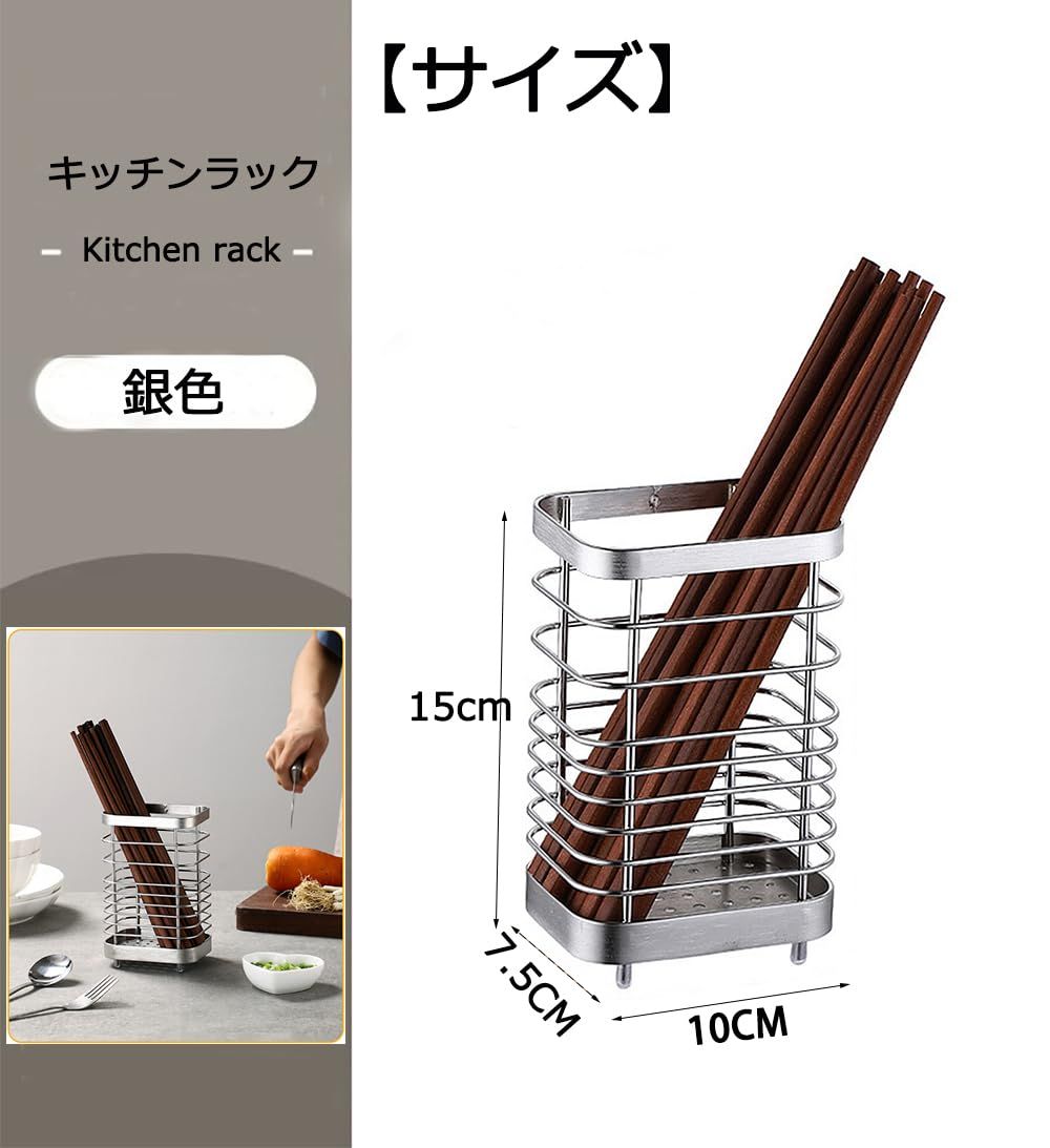 はしたて 箸置き 箸入れ 箸立て スプーンラック フォーク収納 キッチンツールスタンド カトラリースタンド キッチン用品 収納便利 (Lサイズ銀色)