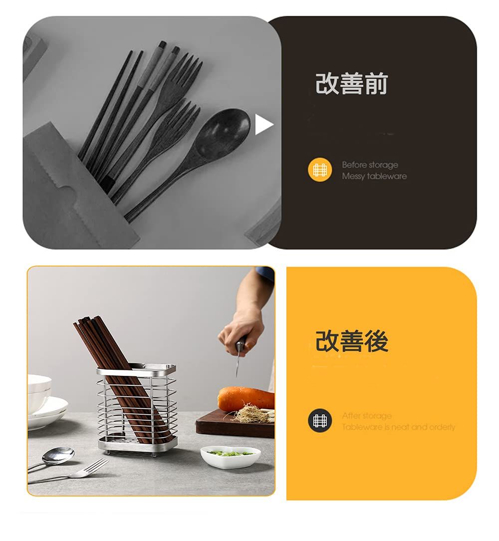 箸、スプーン、フォークなどキッチンの基本アイテムを一挙に収納ができます