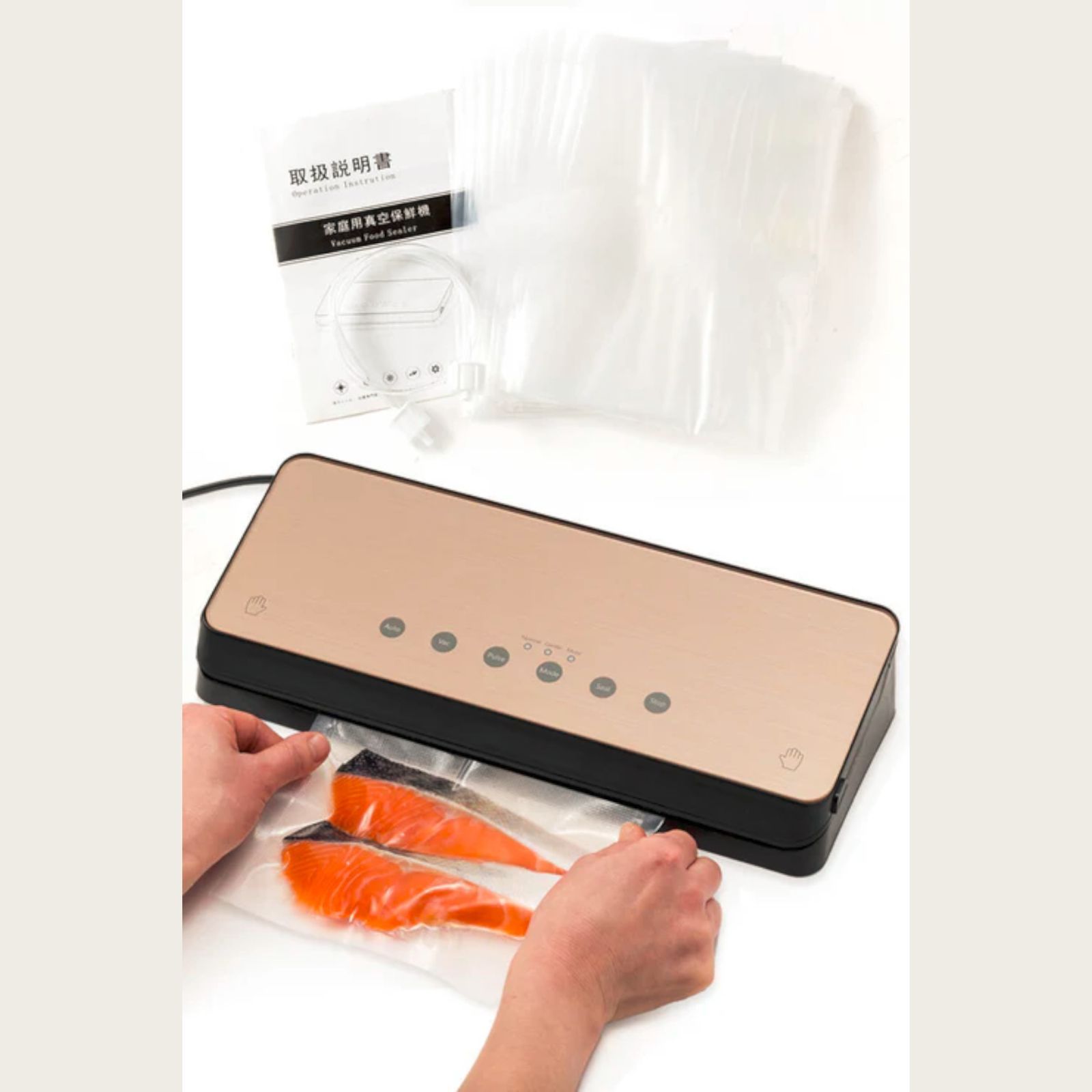 その他手動真空、密閉(シール)のみ、付属のチューブを使用した真空モード(※真空専用チューブに対応している容器やボトル・瓶のストッパーを使用してください)が搭載されています。