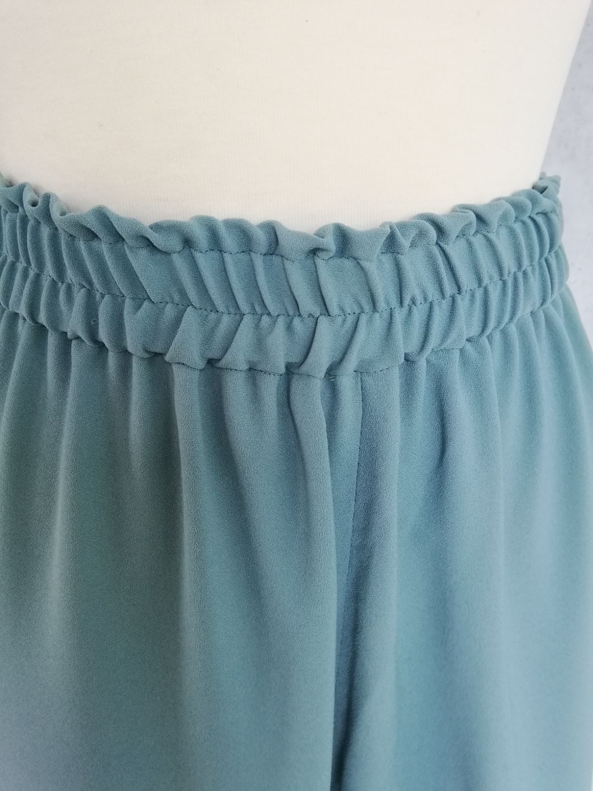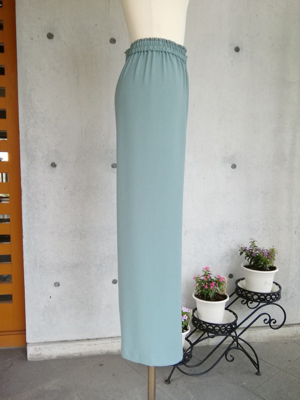 ウエストも総ゴム、また上も深め、脇に接ぎ目無しで作りましたので、ストレスなく楽だけど、きれいに見える・・・。お出かけ、お仕事用にも引けを取りません。