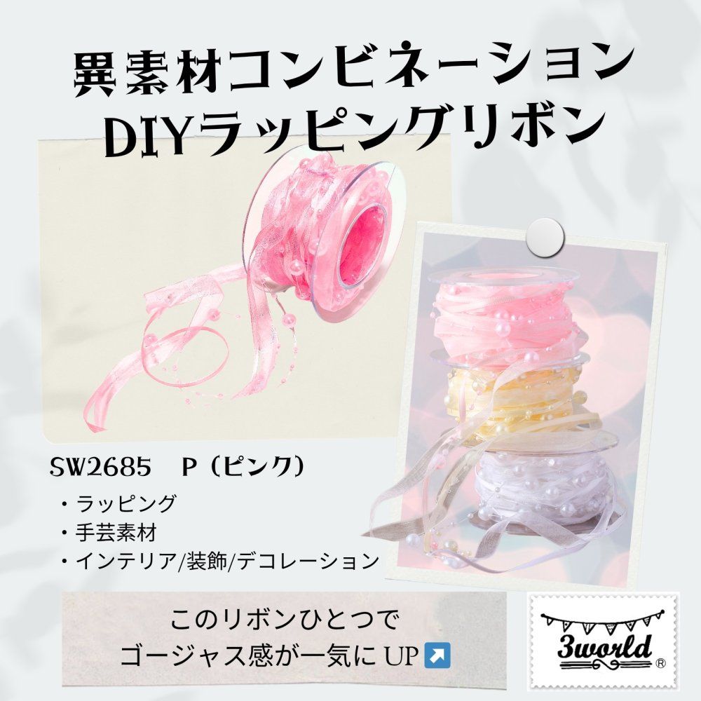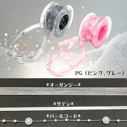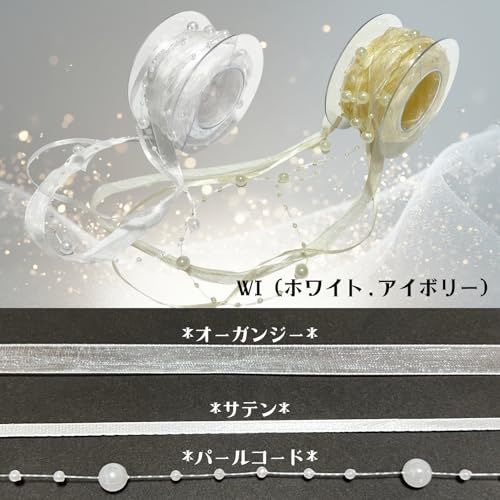 オーガンジー+サテン+パールコードがコンビネーションになった、新スタイルのリボンです。