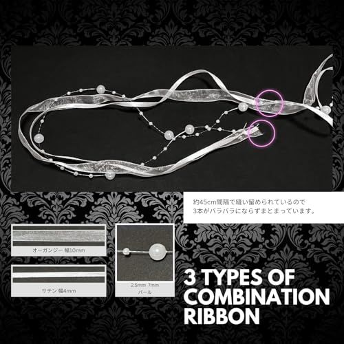 幅:オーガンジーリボン 約10mm、サテンリボン 約4mm、イミテーションパール直径 大約7mm 小約2.5mm
