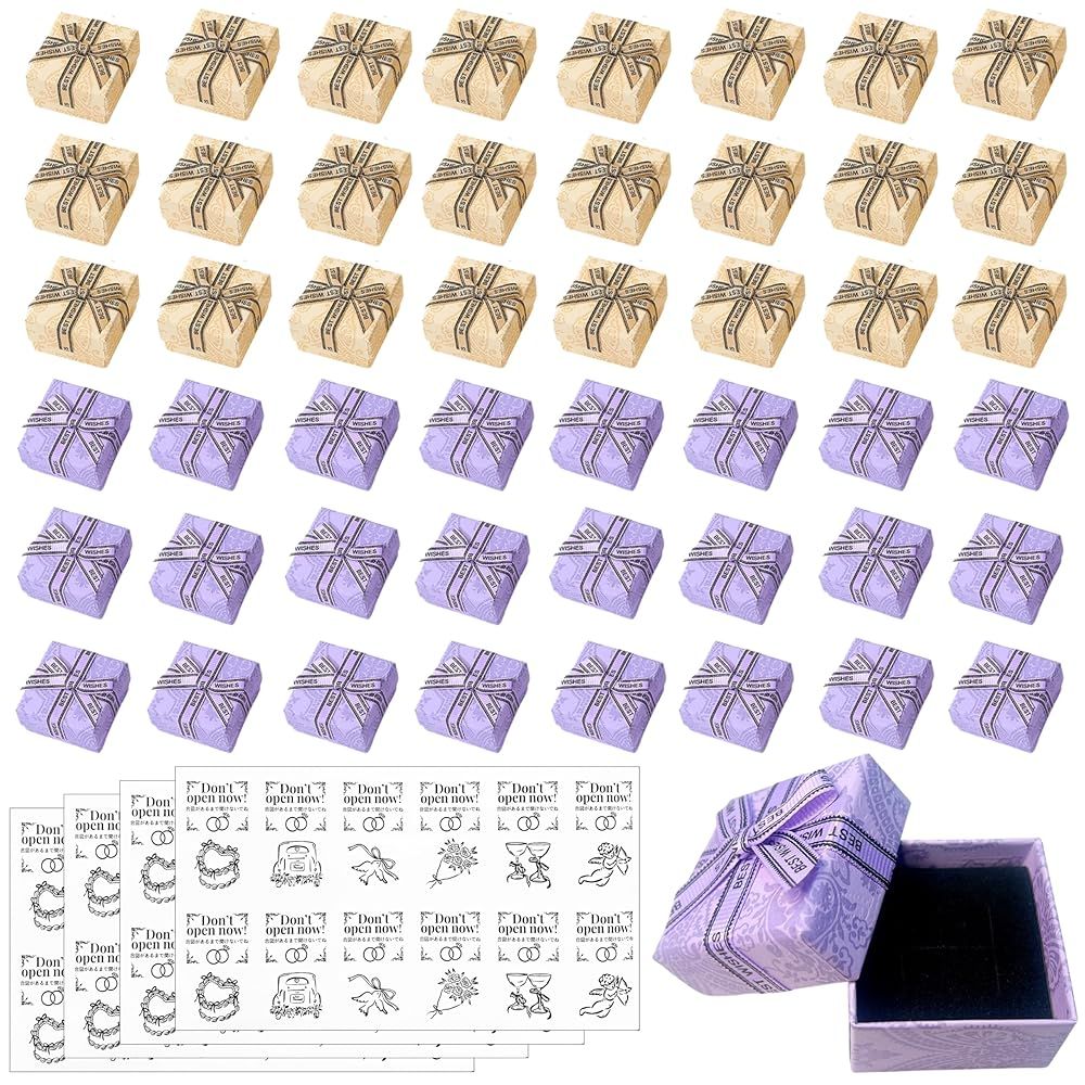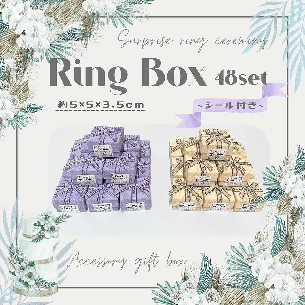 結婚式の大切な瞬間を彩るお手伝いができれば幸いです。 「主な仕様」【商品仕様】BOXサイズ:約5cm角(高さ約3.5cm),BOX素材:紙,セット数:紫BOX×24個、黄色BOX×24個(計48個)、シール48枚付属