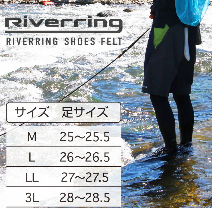 河川でのゲームフィッシング『リバーリング』対応フェルトシューズ
