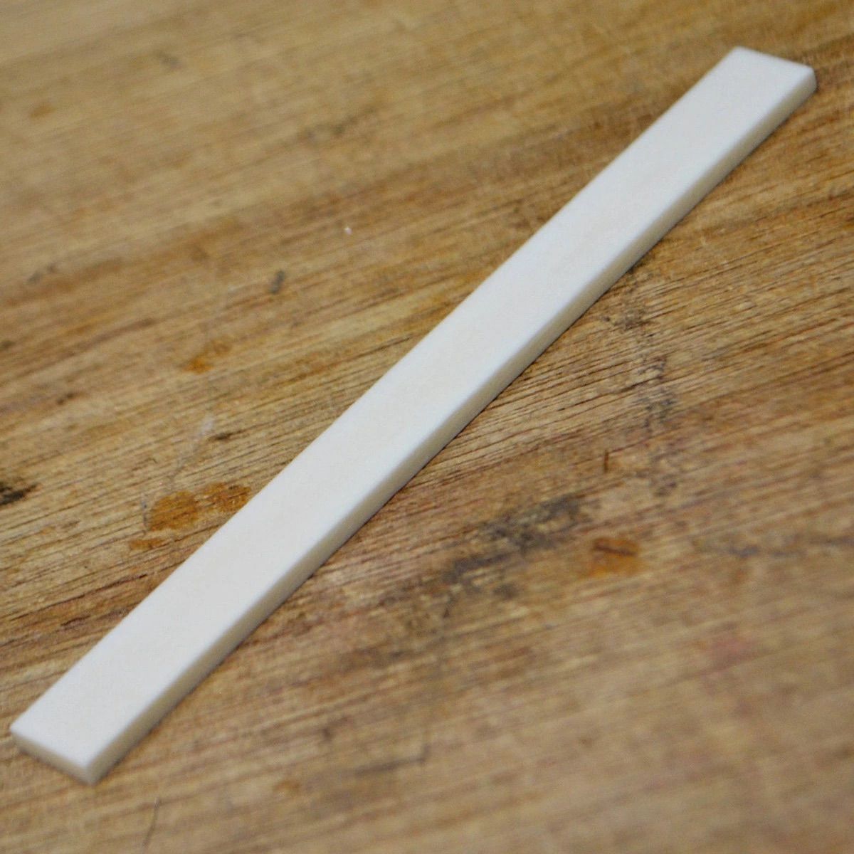 ナット、サドルに使用されていた、従来の牛骨製は狂牛病問題の影響から、比較的若い食用牛から流用せざる得なく、牛骨のサイズが不十分だったり、骨密度の面でも不安がありました。
