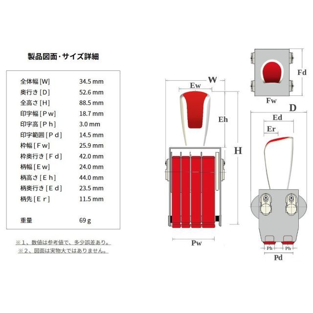 ・サイズ仕様:印字サイズ14.5x18.7mm明朝体