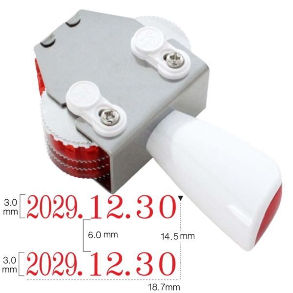 ・二重印字:上下2か所に同時に捺印できる特殊設計の回転印で、製造日や賞味期限の効率的な印字が可能