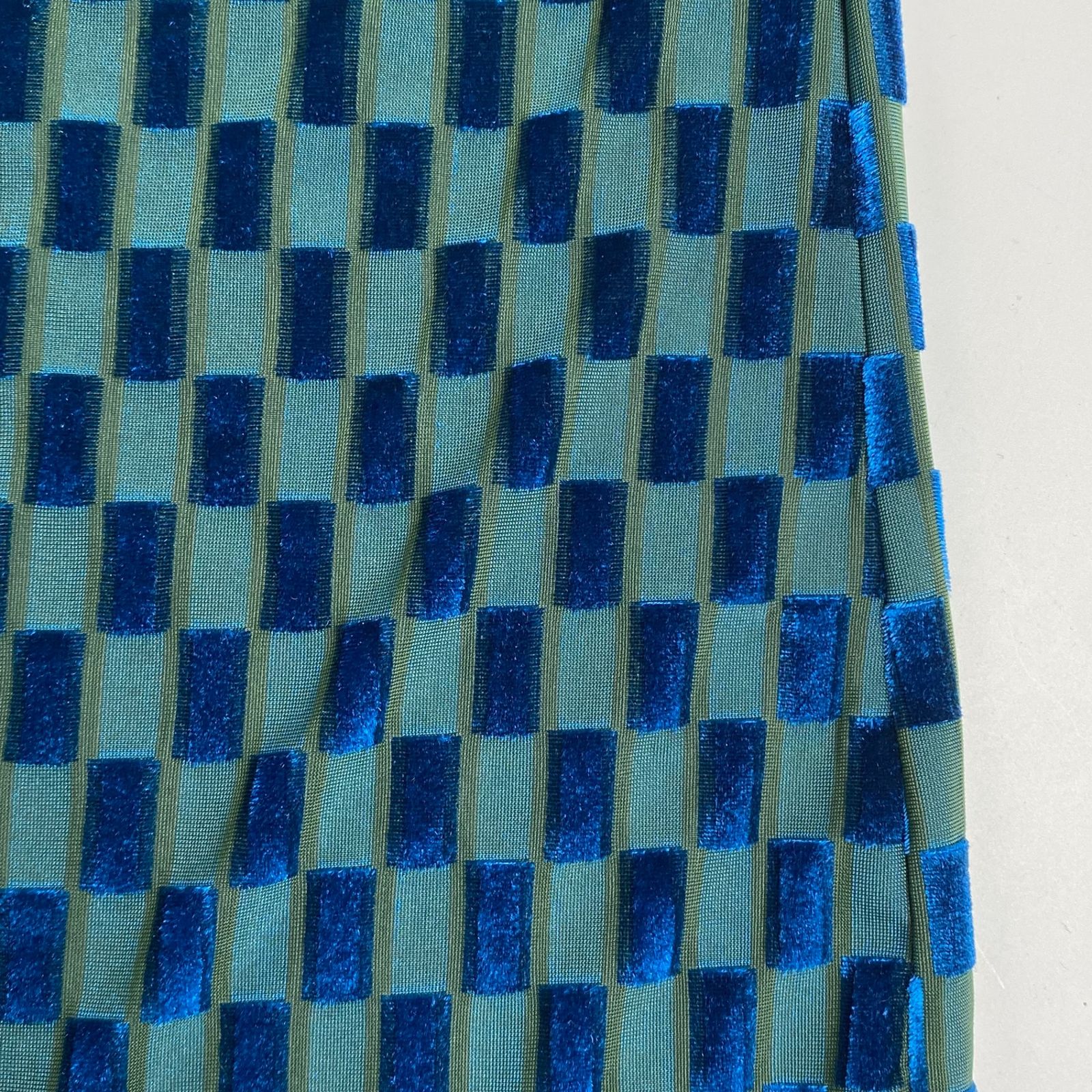 スタッフコメント:バックスタイルのオープンデザインとベロアの光沢が上品な印象を与えてくれるブロックチェック柄が特徴のミディアム丈ワンピース。