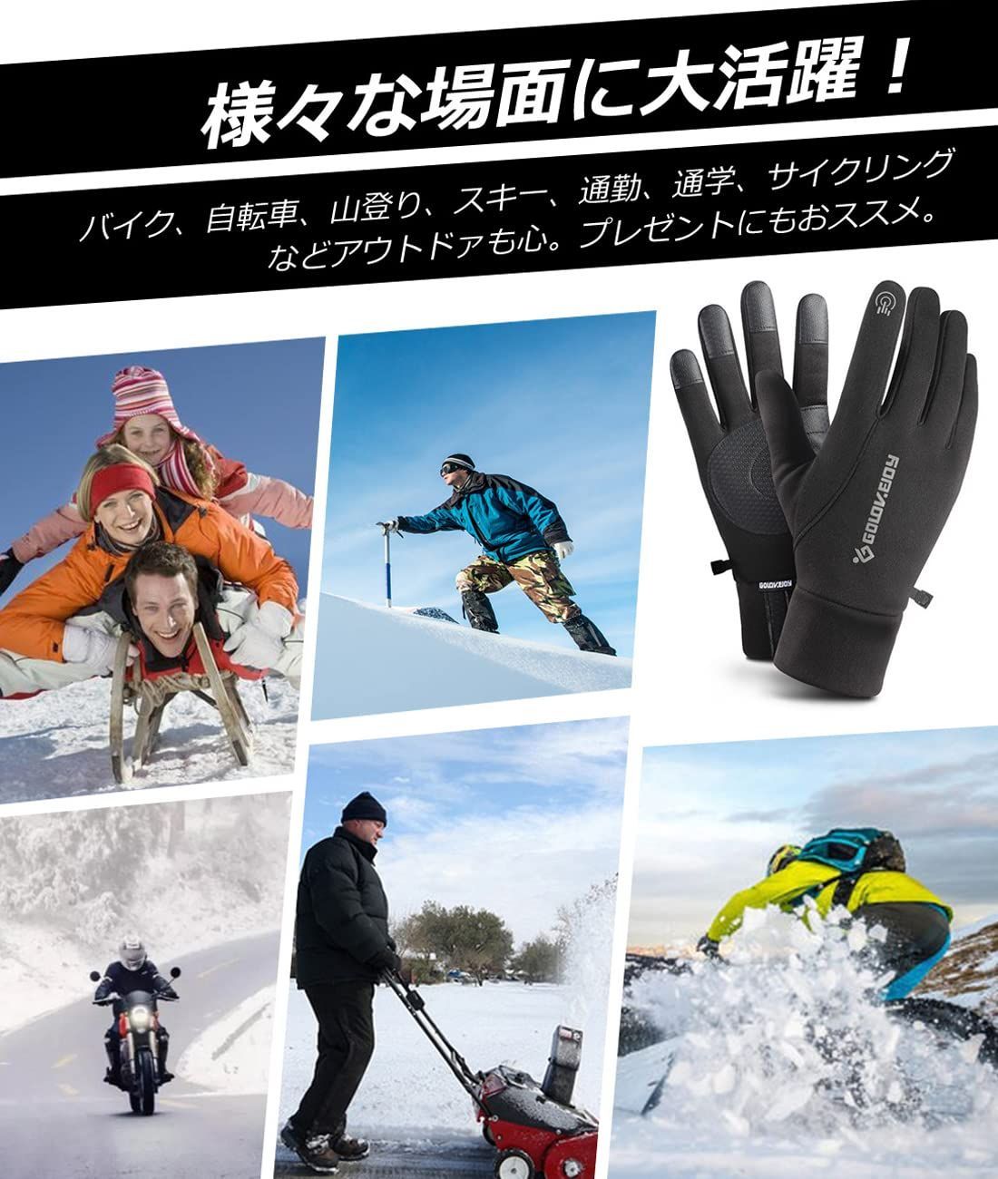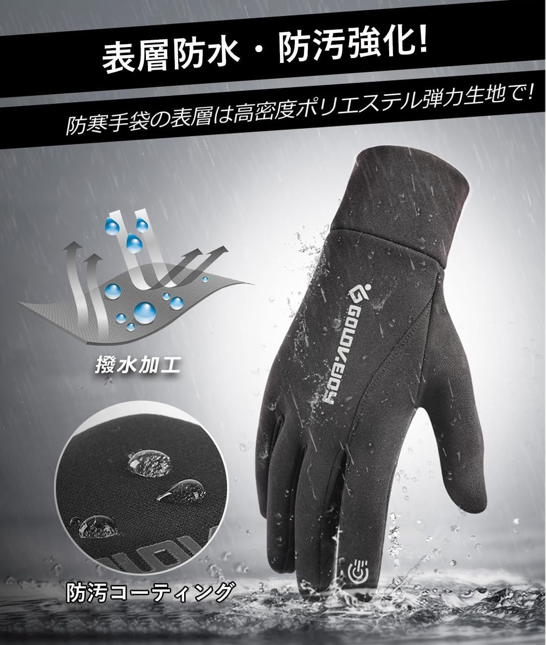 【優れた防汚性】防寒グローブは防寒だけではなく、手の平表層が防水PUレザーを採用して降りますので、撥水加工済みで、小雨の日や雪の日でも快適にご利用可能です。そして、防性と通気性に優れたアウトドアグローブです。寒い冬でも、いつも暖かく保つことができて、汚れてしまうことを心配はありません。