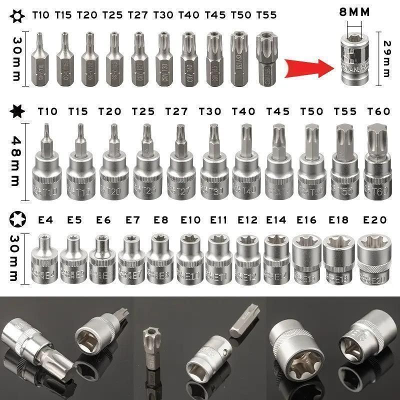 トルクスビット 34点 E型 トルクスソケット スタートルクスレンチ セット 花型 星型 いじり止め 1/4 3/8 整備 交換 カスタム 補修 になります。