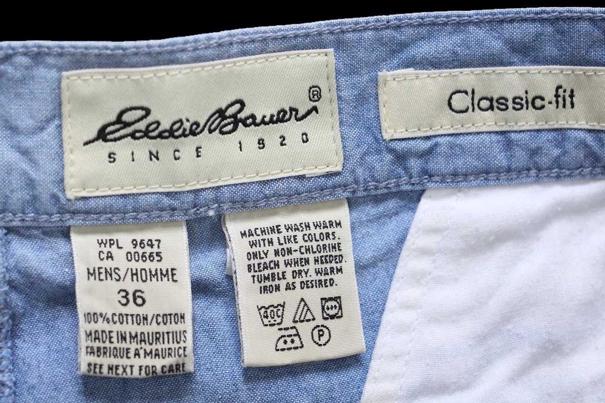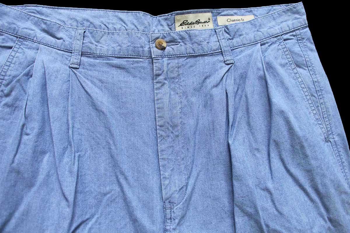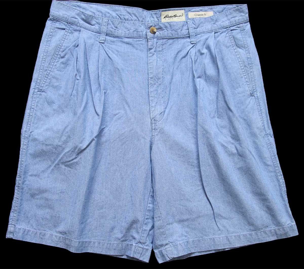 90s EddieBauerエディーバウアー CLASSIC FIT ツータック コットン シャンブレー ショートパンツ 36★ショーツ ハーフ オールド 白タグ