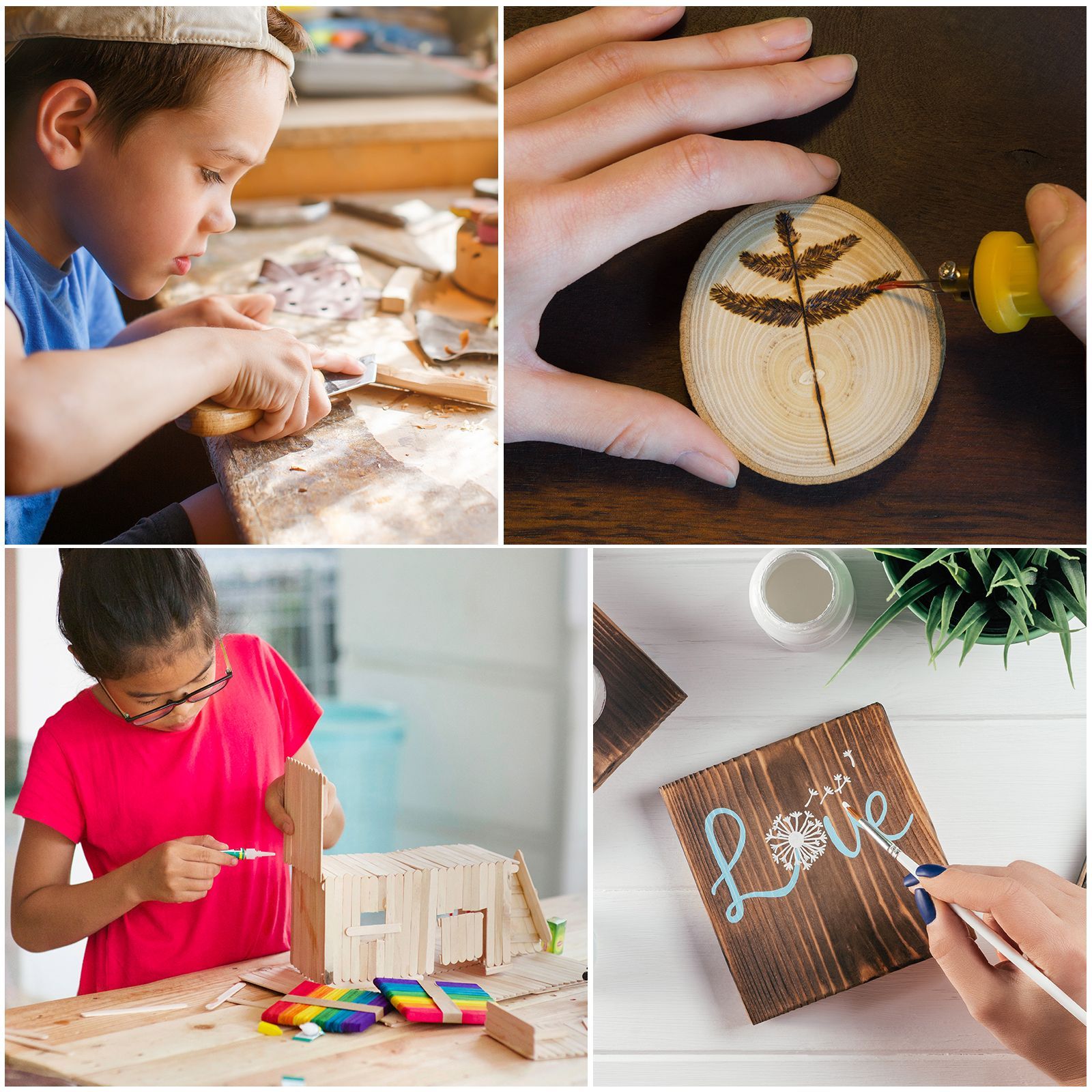 5. これらの未仕上げの木製クラフトは、アートク ラス、木焼きクラフト、誕生日パーティー、結婚式のホリデー装飾、家庭装飾、フォトプロップス、DIY装飾に適用できます。また、粘土彫刻プロセス中により安定した作業をするための陶器の裏板としても使用できます。誰にとっても楽しいです。