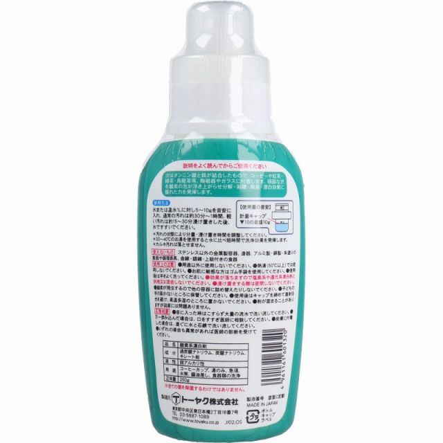 頑固な渋を酸素の泡が浮き上がらせ分解・剥離・除菌・漂白効果に優れた力を発揮します。
