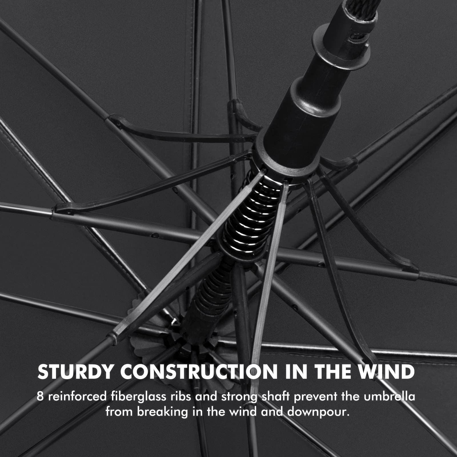 【高品質&耐久性】弊店の丈夫なゴルフ傘は210T防水生地で作られており、優れた防水性とUVカットに優れた生地です。日よけになるだけでなく、雨も防ぐことができます。8本の骨は強化ガラス繊維で作られており、ゴルフ傘全体の重量を軽くしています。豪雨や嵐にも耐えることができます。嵐が来ても壊れたり倒れたりせず、雨風から身を守ってくれる頼もしい傘です。