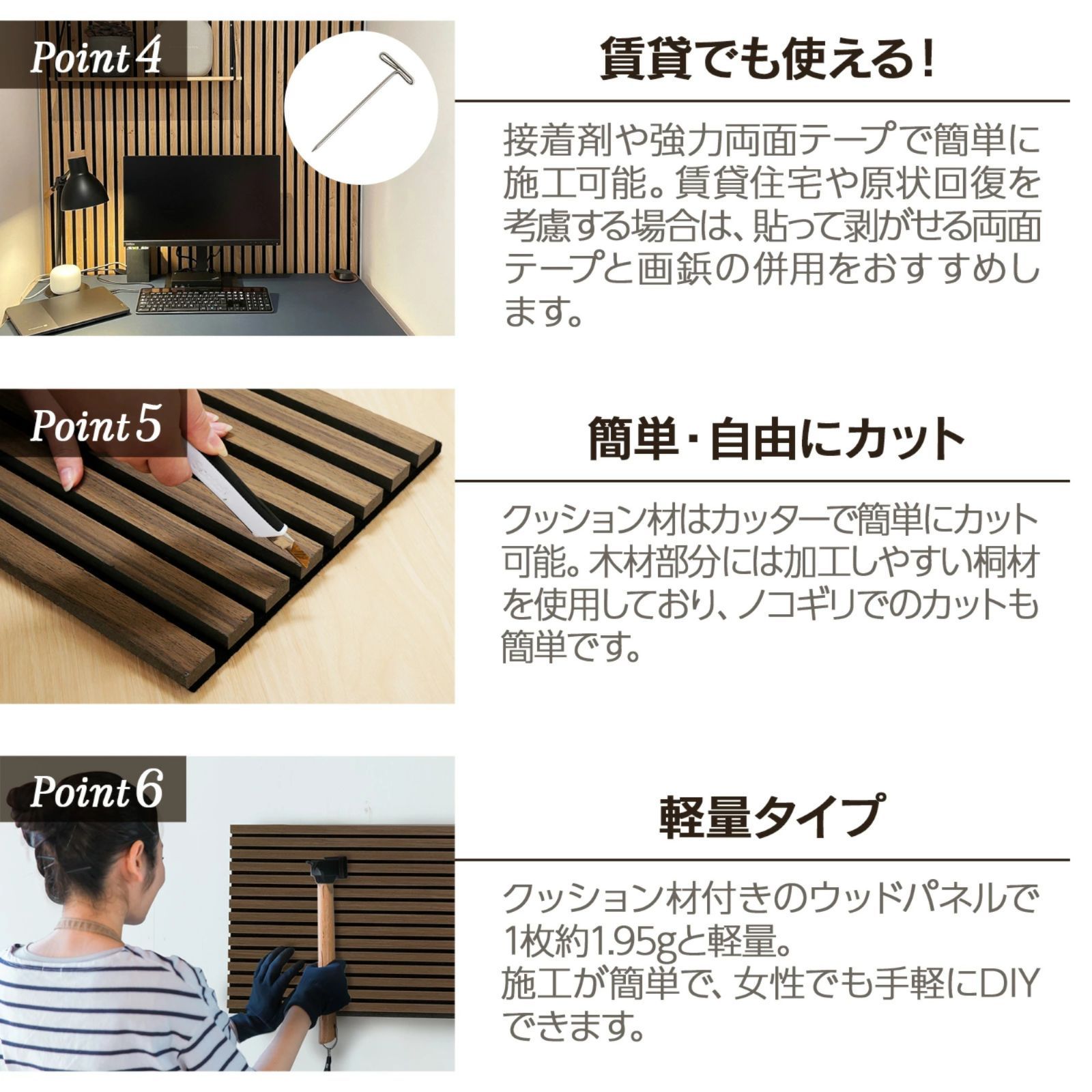 材質:天然木目の圧板 + 中密度繊維板 + 高密度吸音ポリエステル繊維