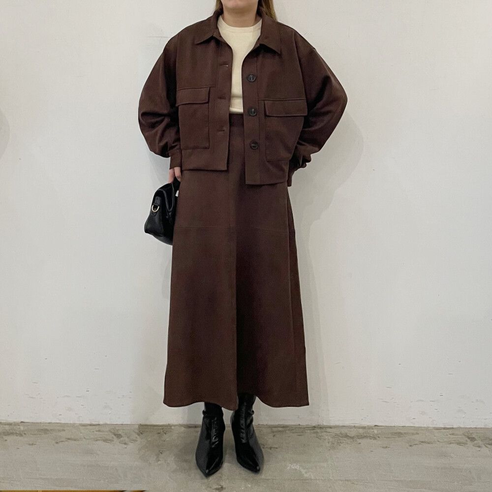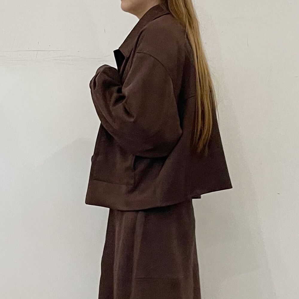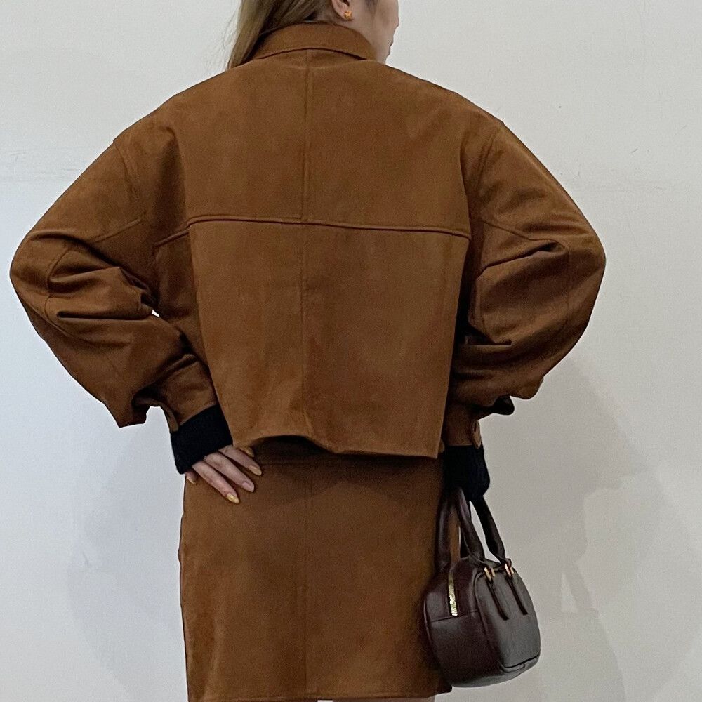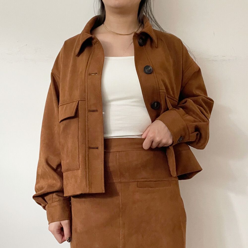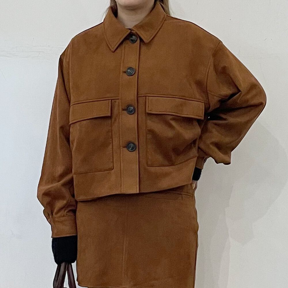 柔らかなスエードタッチ素材で仕立てたショート丈のステンカラージャケット。