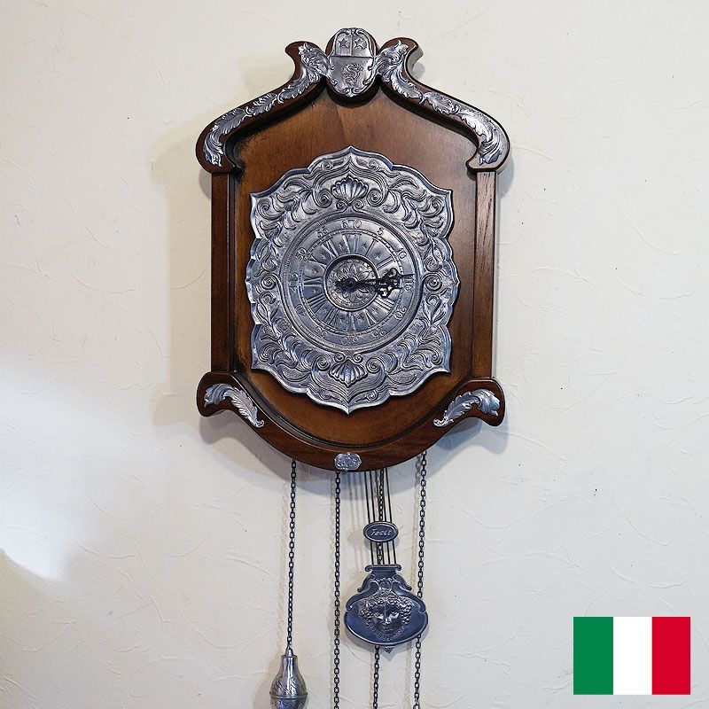 【商品名】 イタリア製 アンティーク 掛け時計 振り子付 クオーツ すず製 ピューター製