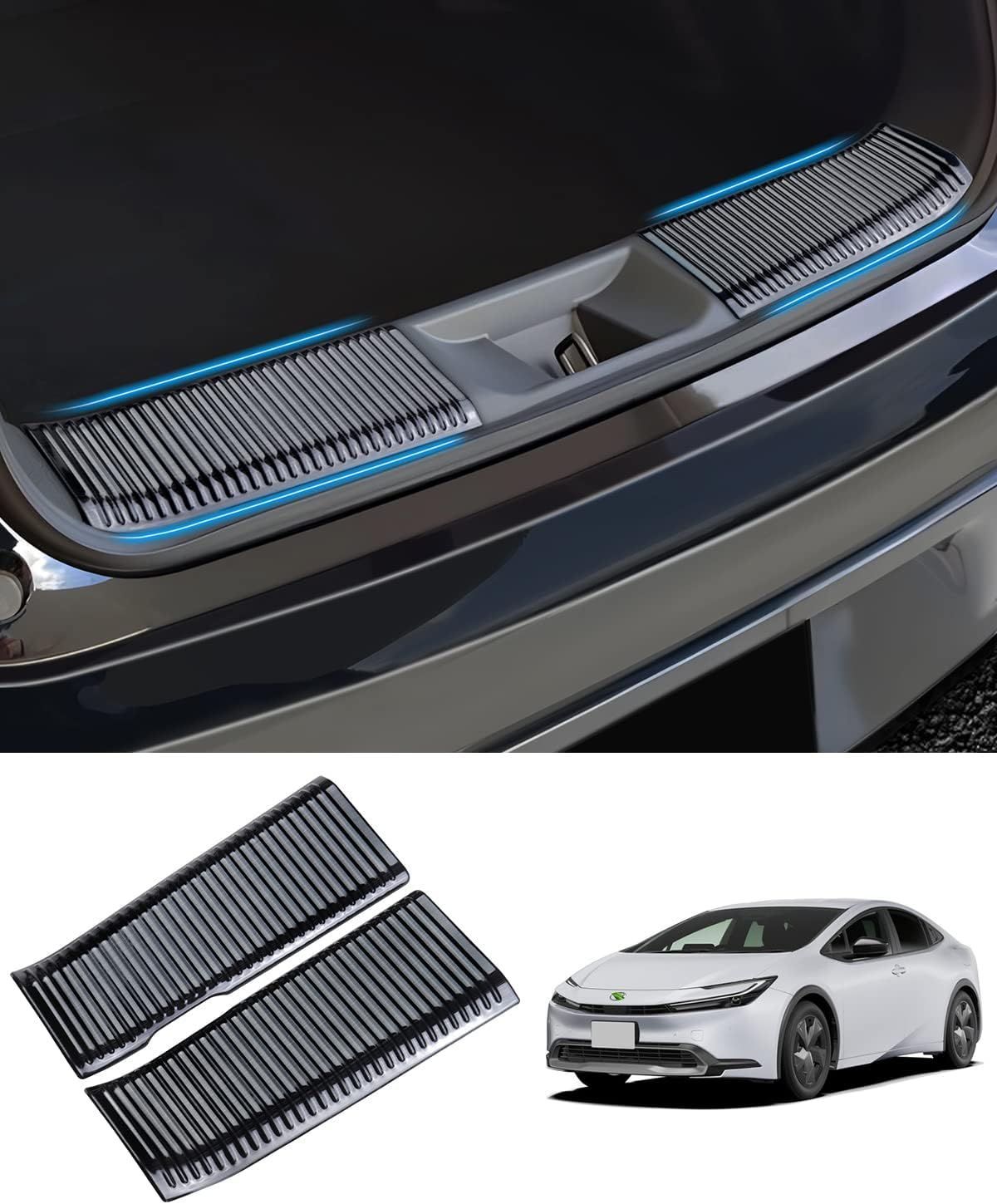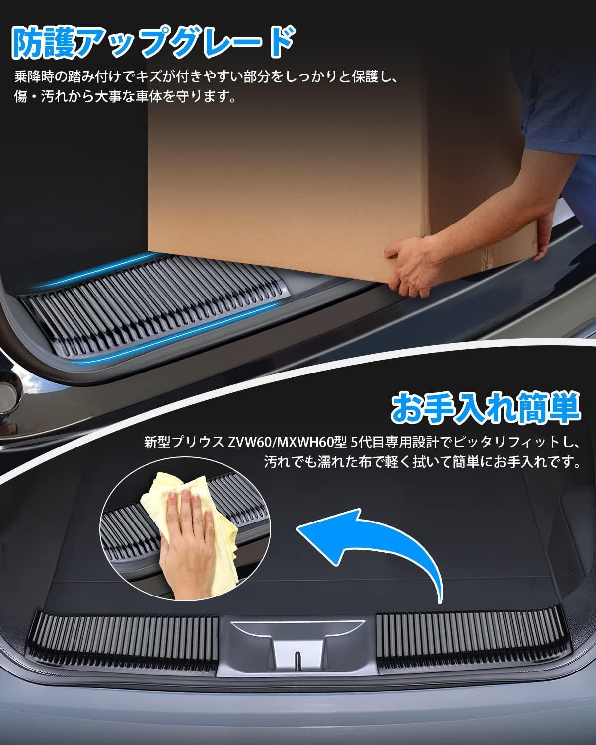 Auto Spec 新型プリウス 60系 リアバンパープロテクター リアバンパーステップガード スカッフプレート ラゲッジスカッフプレート ZVW60/MXWH60型 5代目 2023年-現行 リアステップガード リアバンパー サイドステップ 保護パーツ 汚れ防止 傷防止 専用設計 アクセサリー ステンレス リアセット2pcs 装着簡単 カスタムパーツ (新型プリウス 60系, ブラックヘアライン)
