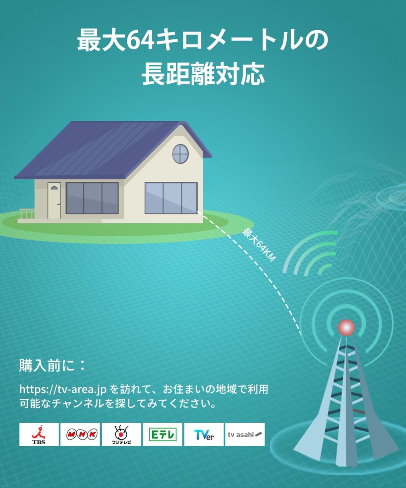 テレビアンテナ 屋外 50-65KM 受信範囲 360度全方位受信 アンテナ 高性能 TVアンテナ 設置簡単 USB式 小型軽量 ブースター付き