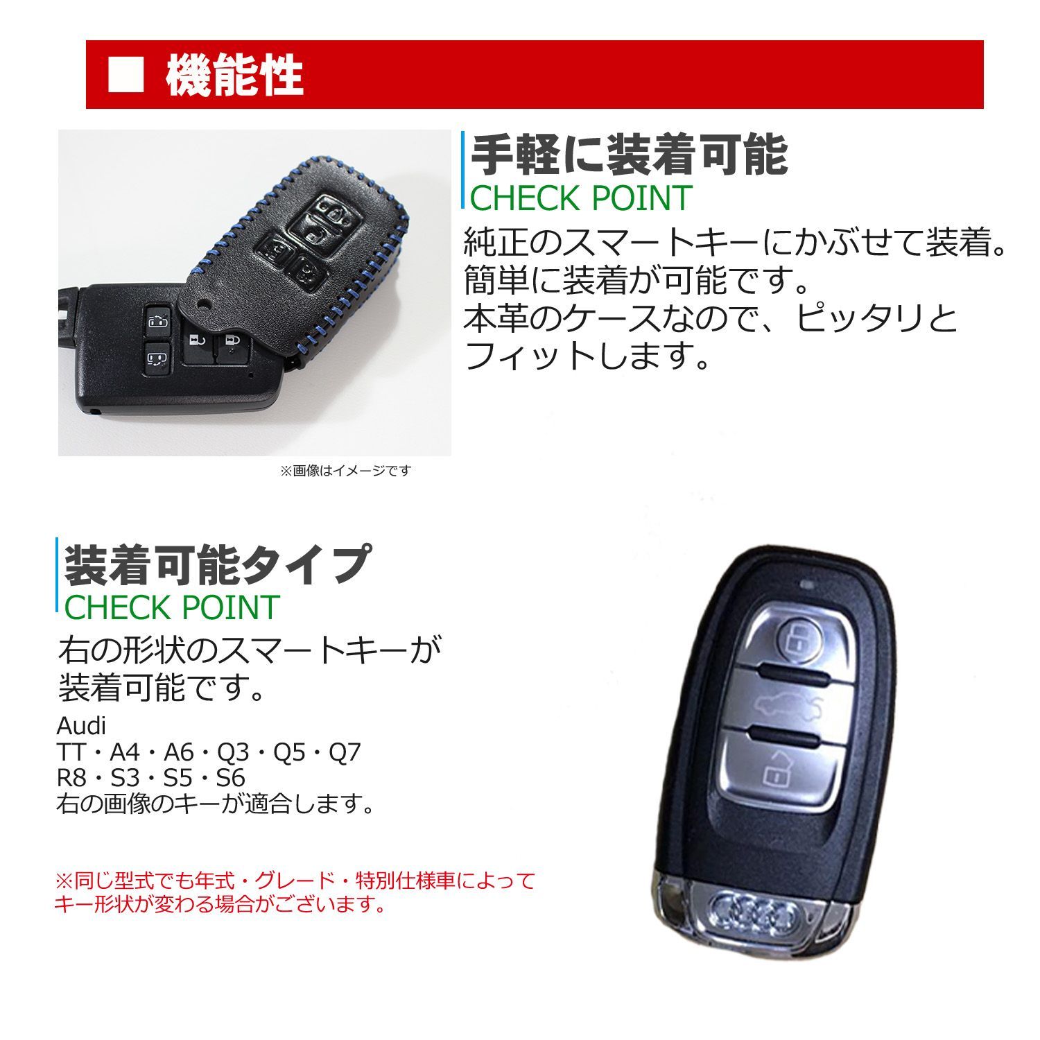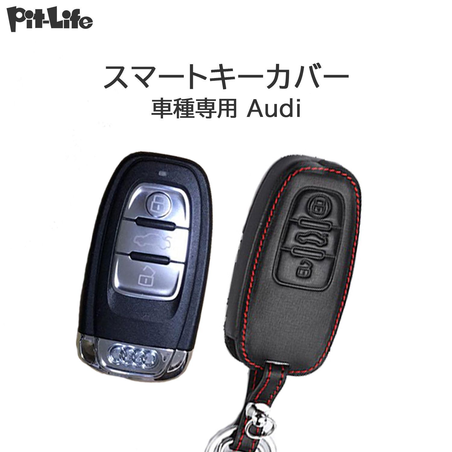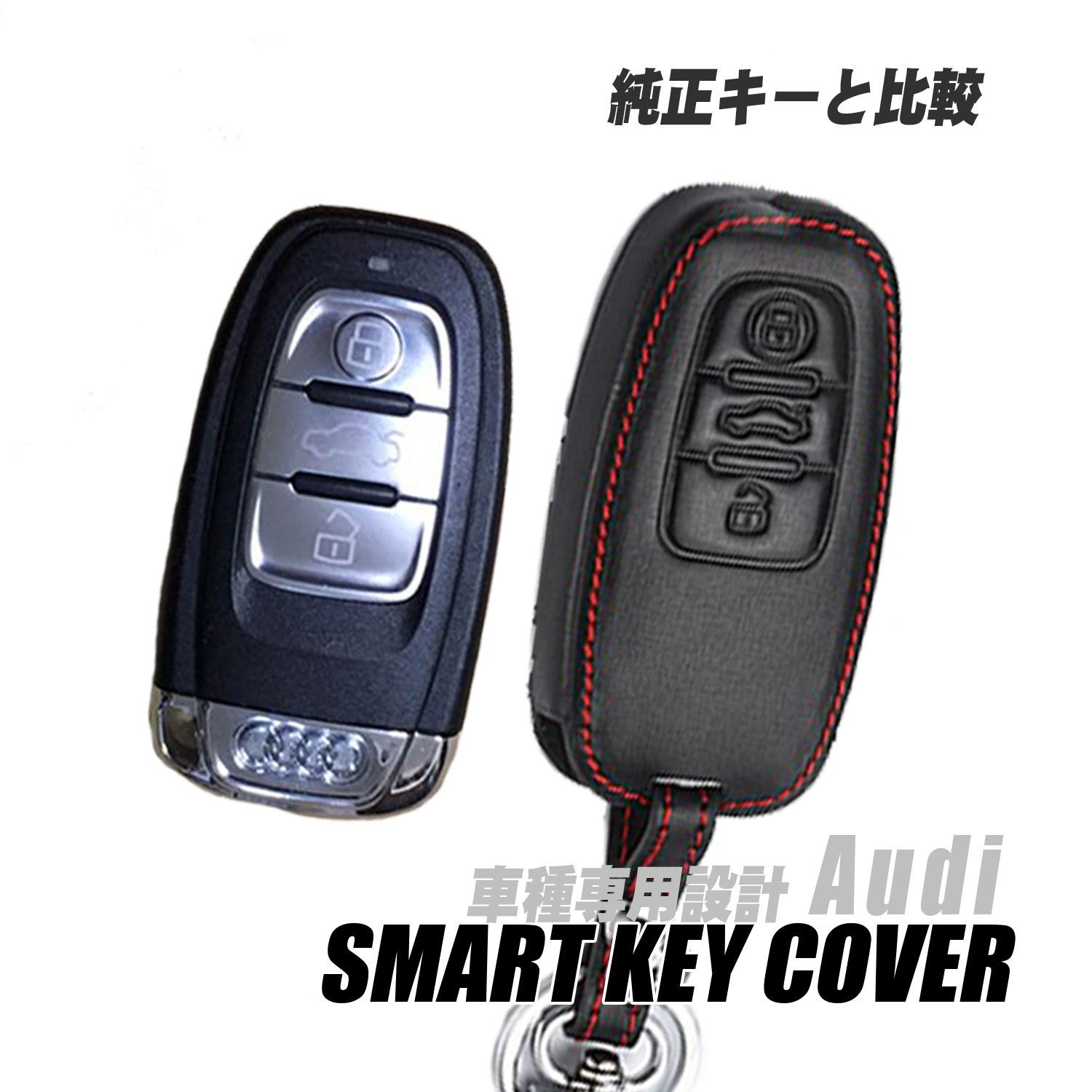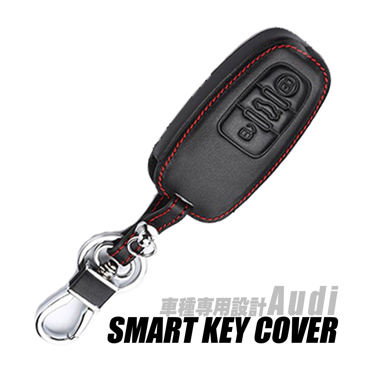 【Audi アウディ専用キーケース】黒本革 赤ステッチスマートキー対応 キーカバー メンズ・レディース TT A4 A6 Q3 Q5 Q7 R8 S3 S5 S6 車種専用設計