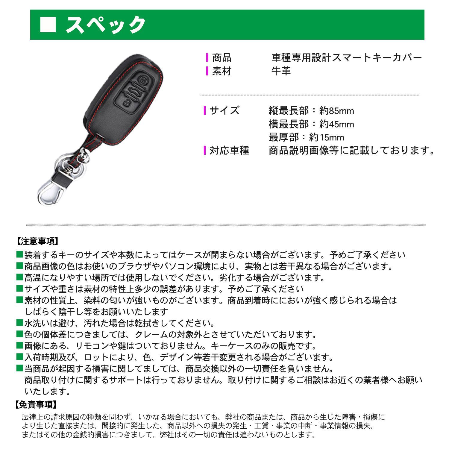 純正スマートキーを傷から守る高級感ある本革製キーケースです。ケースに入れたままボタン操作が可能で、外観も純正風に仕上げました。カラビナ付きで持ち運びも便利です。
