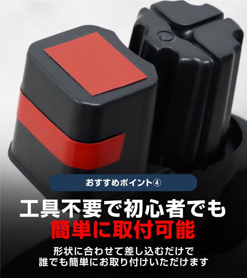 耐衝撃・耐熱性に優れたABS素材を使用し、滑り止めマット付きで走行中も小物をしっかりホールド。