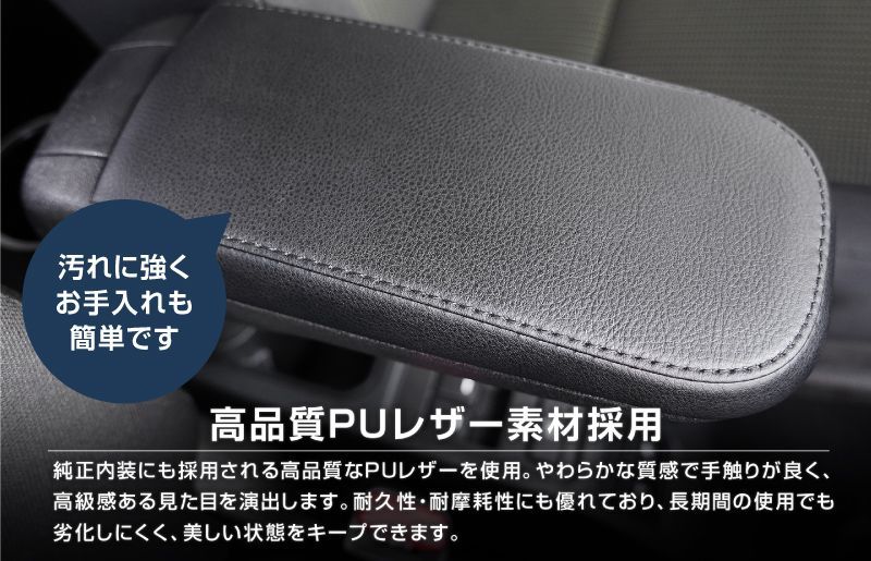 柔らかなPUレザーを採用した肘置きは角度調整も可能で長時間ドライブを快適にサポートします。
