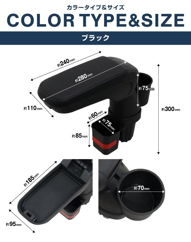 アームレストはセンターカップホルダーに差し込むだけの簡単取付で、しっかりフィットして安定感抜群。