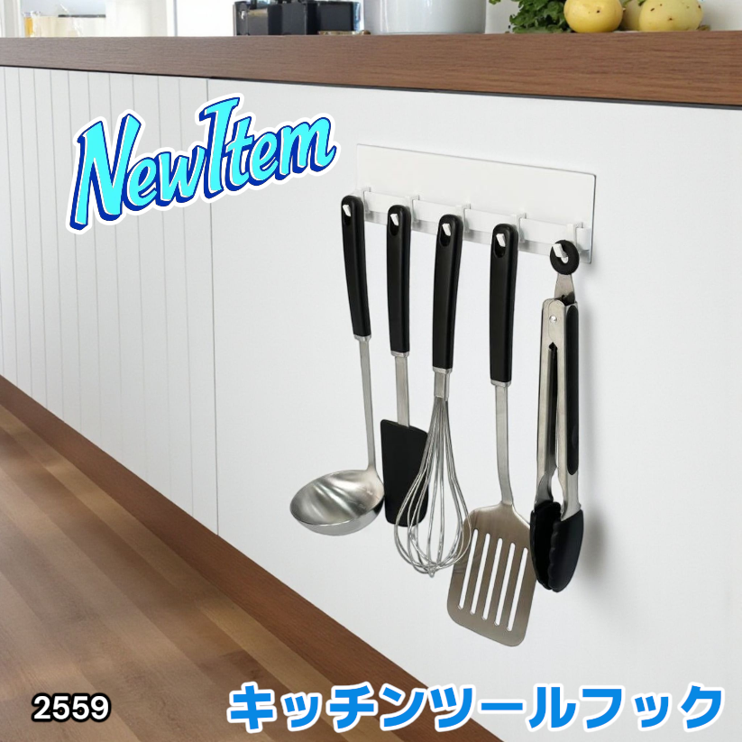 フックは可動式なのでキッチンツールを重なりません。収納する物に合わせてフックの位置を調整できます。