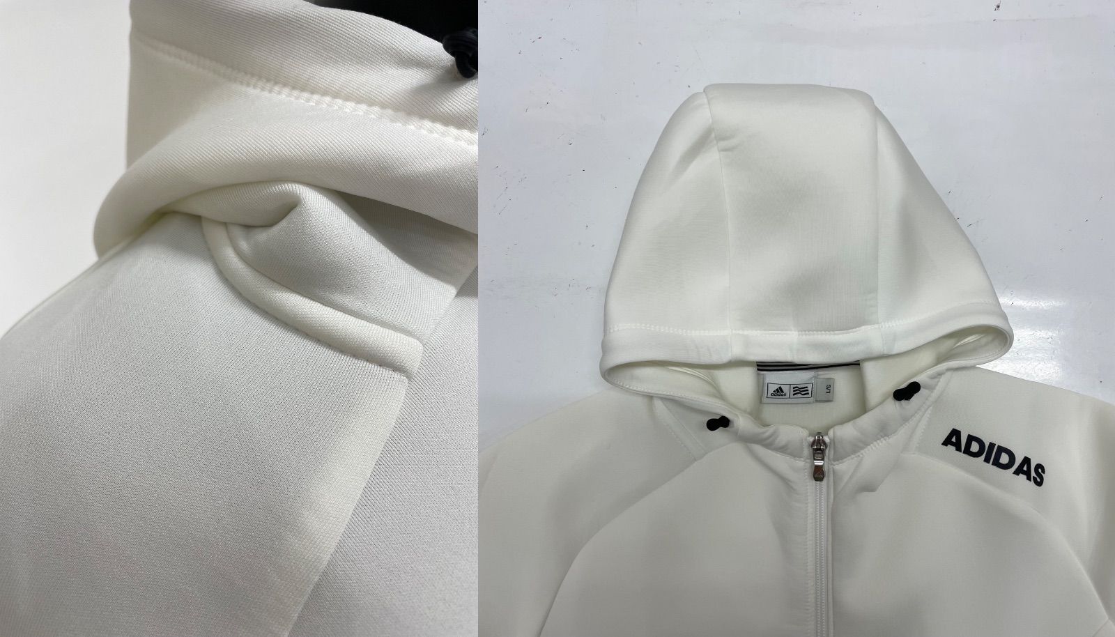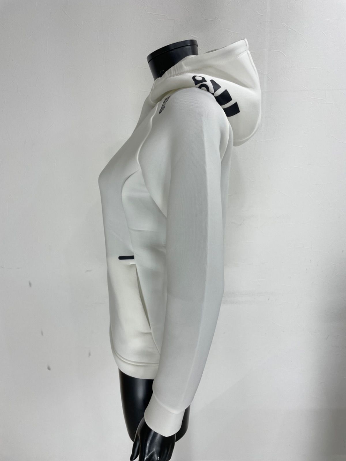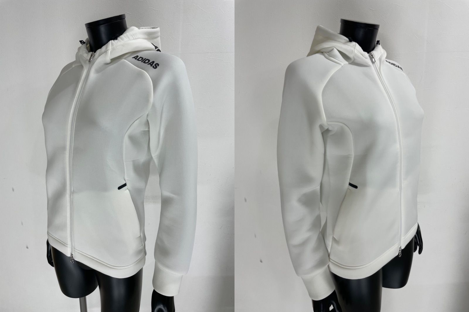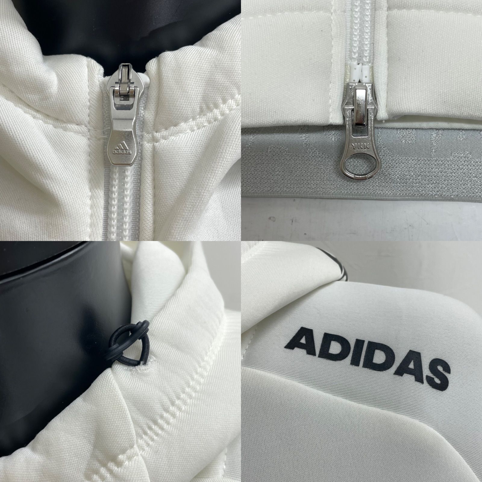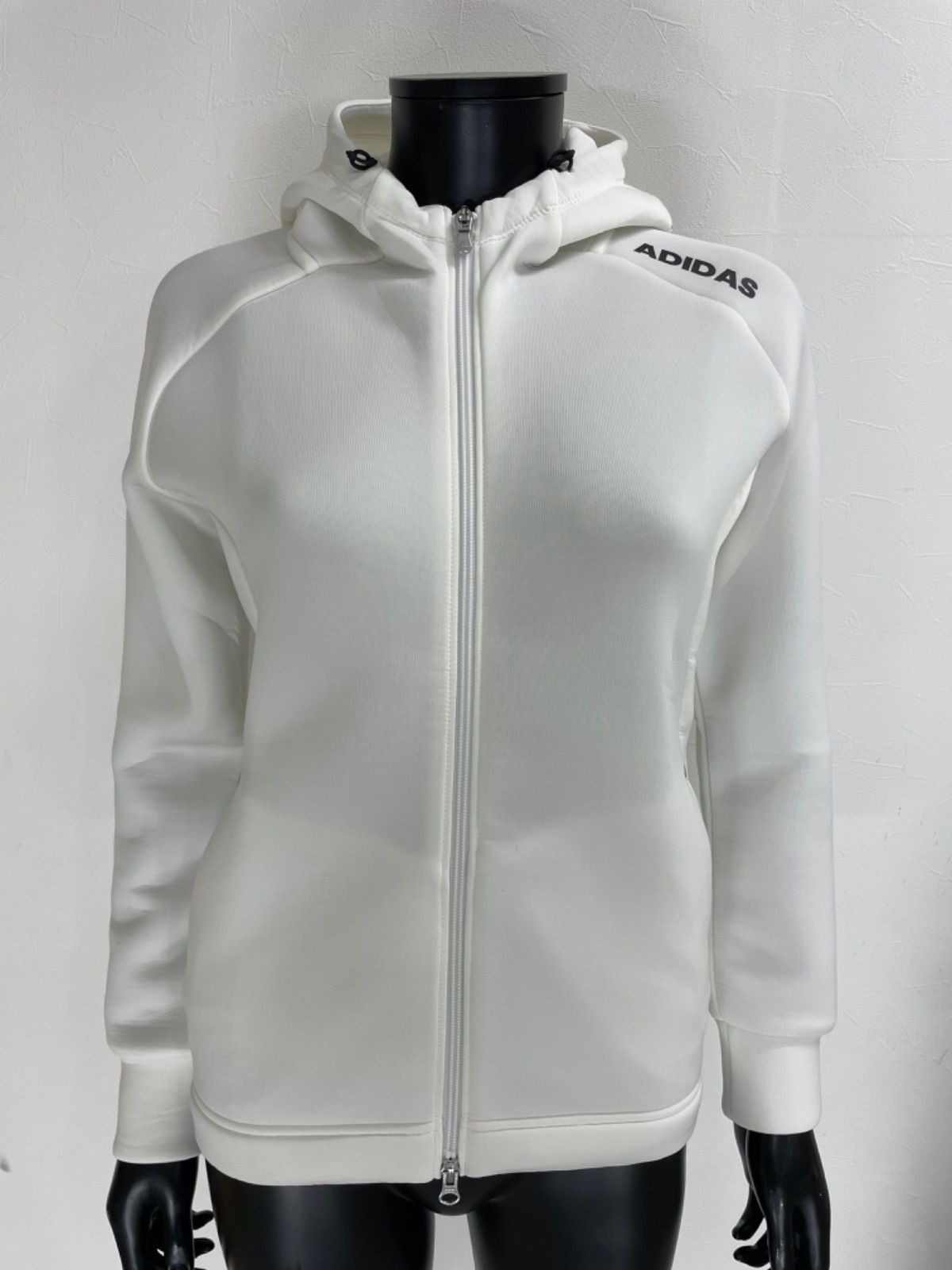 【USED】adidas アディダス ポリエステル ストレッチ ダブルジップ 長袖 パーカー ジャケット ホワイト 白 レディース L ゴルフウェア