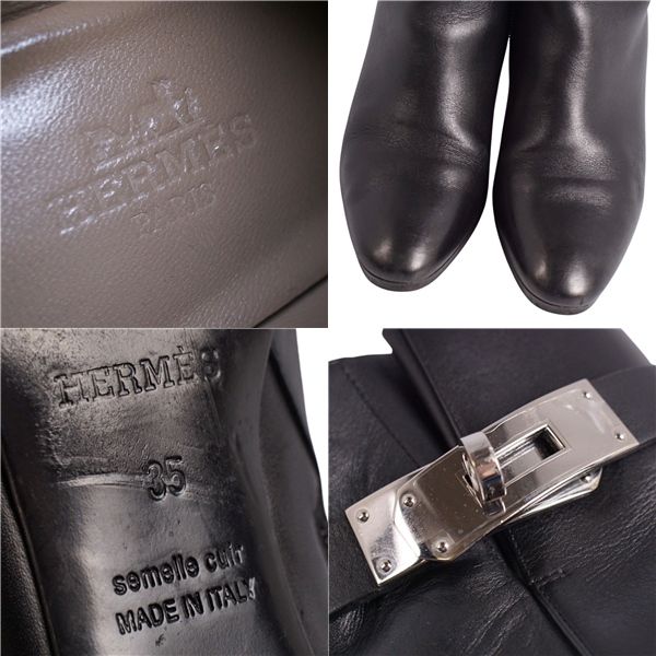 美品 エルメス HERMES ブーツ サンジェルマン ショートブーツ ケリー金具 レザー シューズ レディース 35(22cm)ブラック