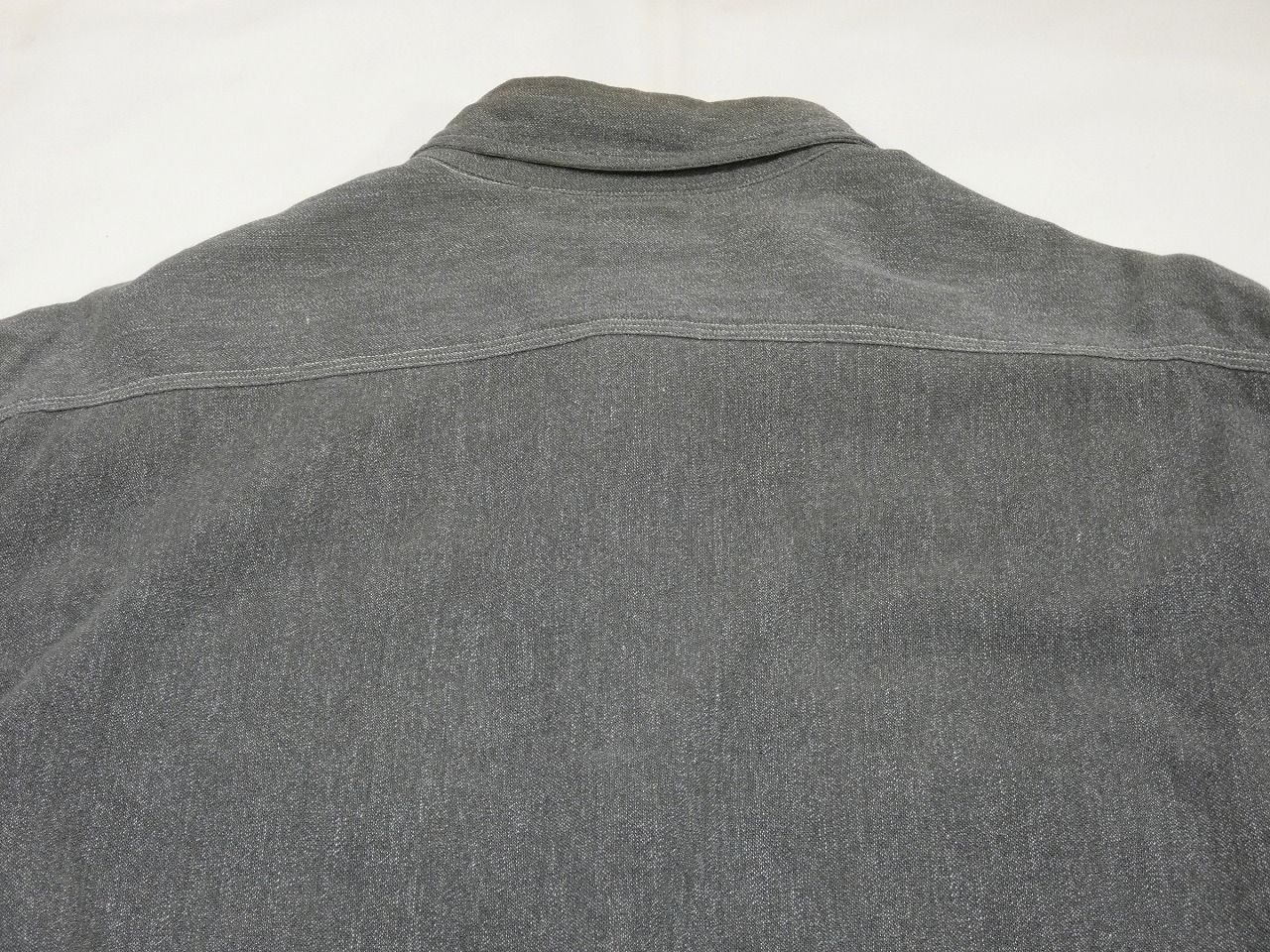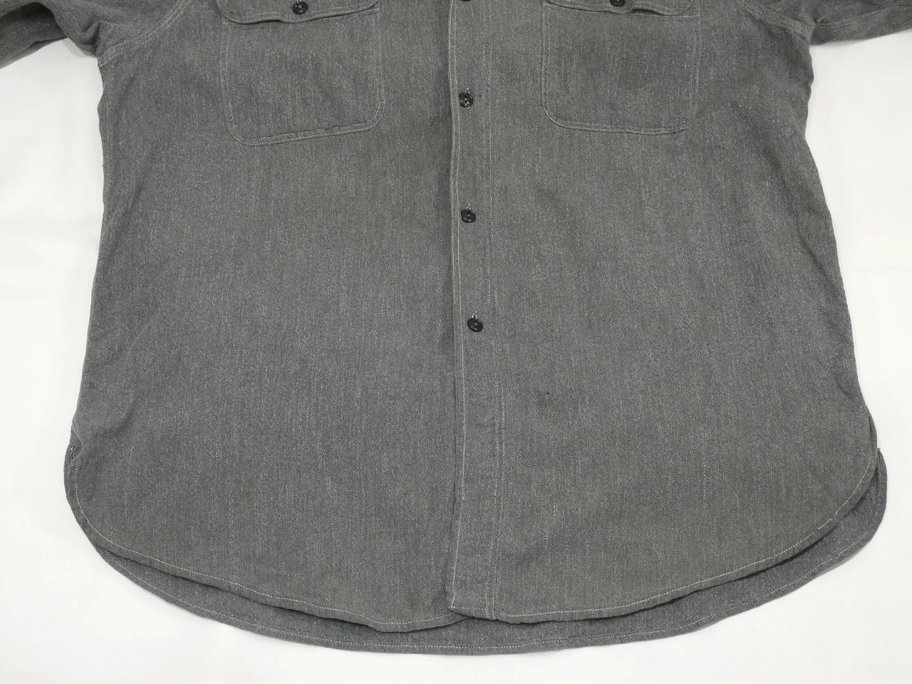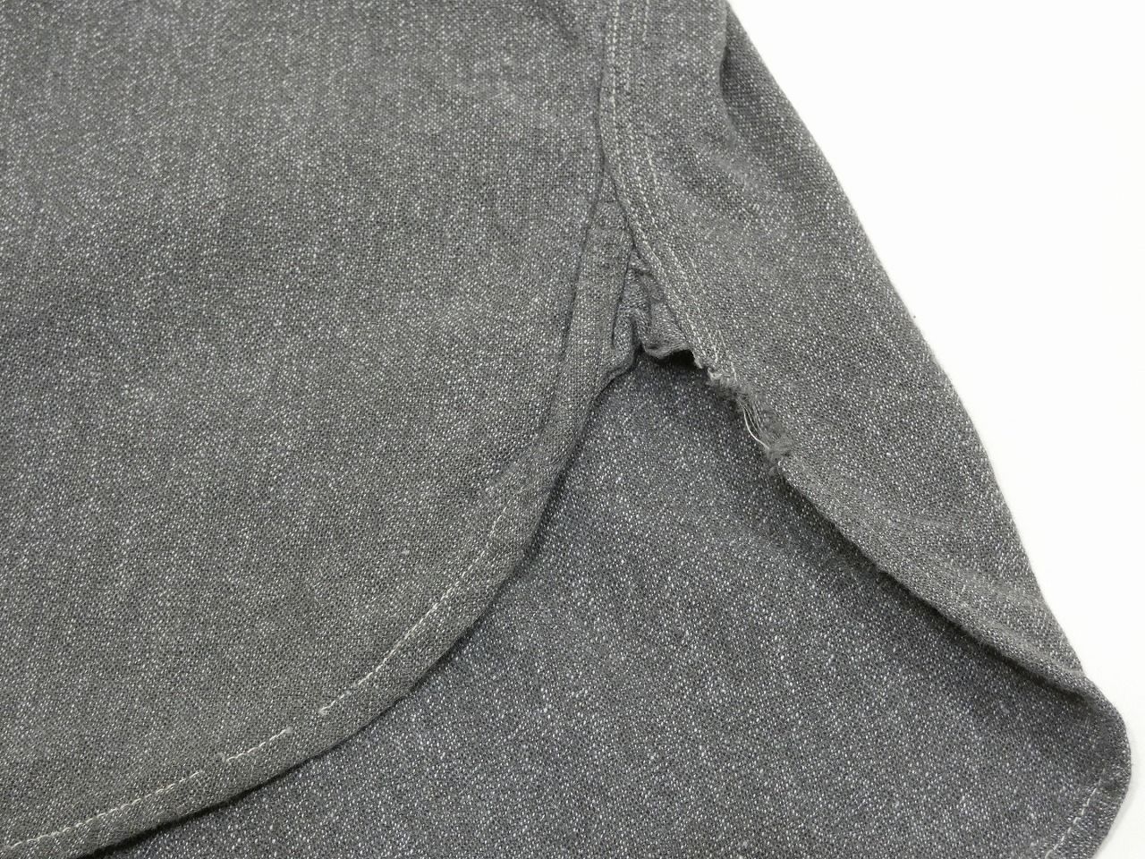 コンディションはやや使用感があり、襟裏や袖、腹部などに薄いシミ、腹部や右袖剣ボロ付近に小穴、襟下や両袖カフス先、左マチ付近にスレキズなども見られますが、特に気になる大きなダメージなども無くワークシャツらしい良い雰囲気の1枚です。