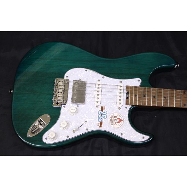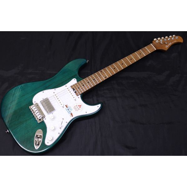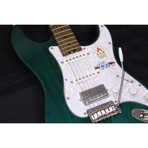 RSM ネックを採用した高スペックモデル ● ローステッドメイプル& SSH レイアウト ローステッドメイプルをネックと指板に採用し、 1 ランク上のコンポーネントを搭載した実戦仕様の 1 本に仕上がりました。バッカスグローバルシリーズの高いコストパフォーマンスを実感出来る、細部までこだわりが込められたスペックです。 ●GraphtecTUSQ ナット ナット部分には機能面でもサウンド面でも評価の高い Graphtec 社製の TUSQ ナットを搭載。チューニングの安定性にも一役買っています。 ●2 点支持 Wilkinsonr トレモロユニット アームアップ、ダウン両方向に可動域を確保した上で、チューニングの安定性と微妙なニュアンスを両立する 2 点支持の Wilkinson 製トレモロユニット「 Wilkinson WV2-CR 」を搭載しています。 ● ロックペグ アーミングの自由度が高まるほどチューニングの安定性が気になりますが、本機ではロック式のペグを採用することでその心配を解決しました。 ペグ裏のホイールを回すとストリングポスト内のロッドが上昇し、弦が挟み込まれることで固定されます。ストリングポストに対する弦の巻き数が減ることにより、チューニングの安定性が劇的に上昇するという効果があります。 ●SSH ピックアップレイアウト+コイルタップスイッチ SSH ピックアップレイアウトで粒立ちの整ったクリーントーンから、パワーあるオーバードライブサウンドまでジャンルを問わず幅広く音作りをすることができます。 更にコイルタップスイッチを搭載し、リアハムバッカーはシングルピックアップの様なきらびやかなサウンドを出力することも可能です。 ■SPEC Body : Nyatoh Neck : Roasted Maple Fingerboard : Roasted Maple Bridge : Wilkinson WV2-CR Machineheads : Locking tuner Fret : Nickel Silver Pickup : Original S-S-H set Control : 1Vol,2Tone(Pull up= Coil Tap switch),5way PU selector Scale : 648mm Fingerboard Radius : 305R Width at Nut : 42.0mm Finish : Urethane 定価:¥ 85,000+ 税 ▲ 付属品 ギグバッグ、保証書、レンチ登録の画像と販売商品と異なる場合がございます。予めご了承お願い致します。全て新品。ケーブル・消耗品以外メーカー 1 年保証書付のでご安心してお買いもの頂けます。