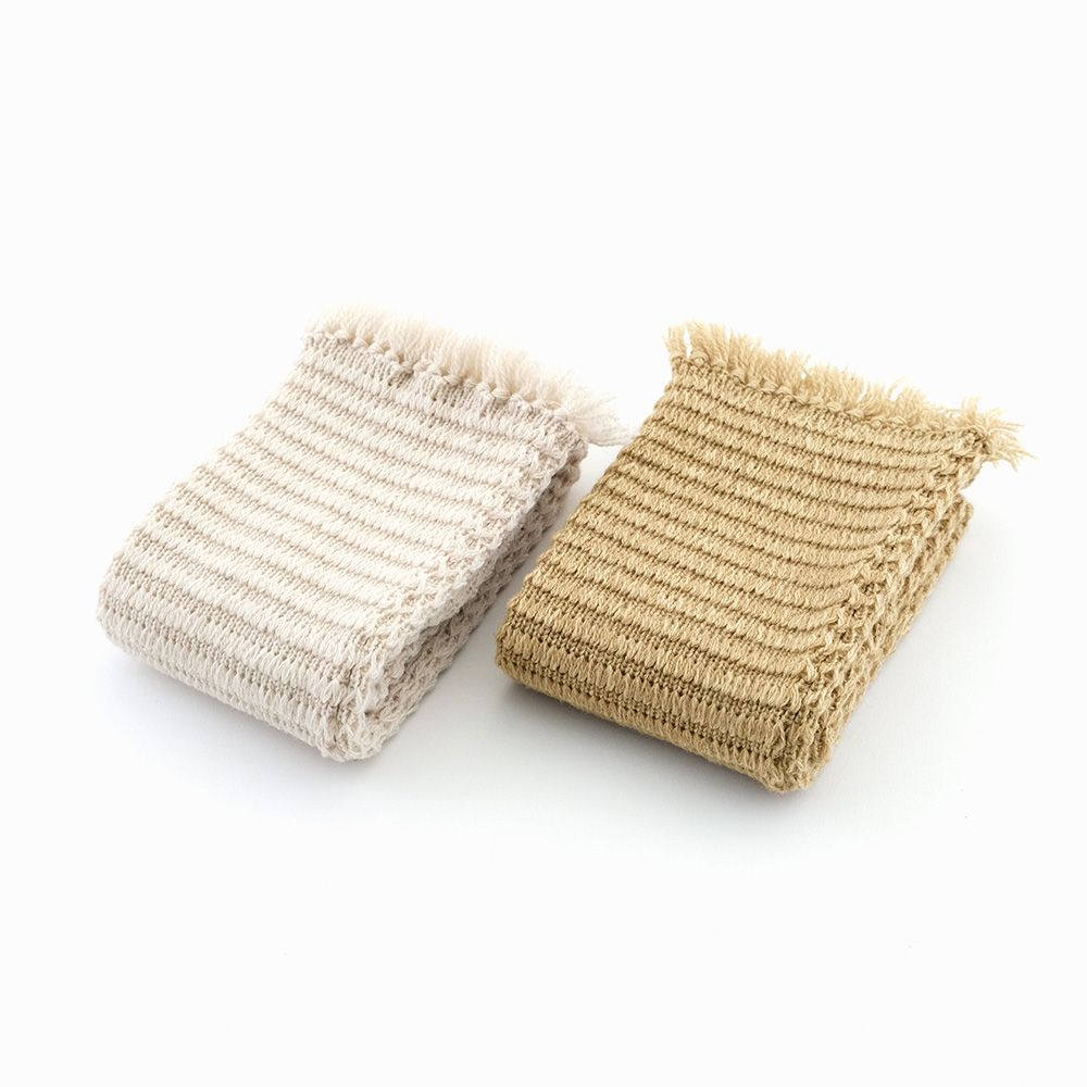 注意事項 この製品は、日焼け、汗や水に濡れた場合の摩擦により、他の物への色移りや変色する場合がありますのでご注意ください。素材の特性上、毛羽立ちやピリングが生じることがあります。また、水洗いにより縮み、色落ち、毛羽立ちなどが生じ、風合いが変わる事があります。洗濯の際は、ネットに入れて押し洗いし、他の物と一緒に洗わないでください。蛍光増白剤・漂白剤入りの洗剤は使用しないでください。長時間水に浸けておいたり、濡れたまま放置しないでください。タンブラー乾燥は避け、自然乾燥してください。