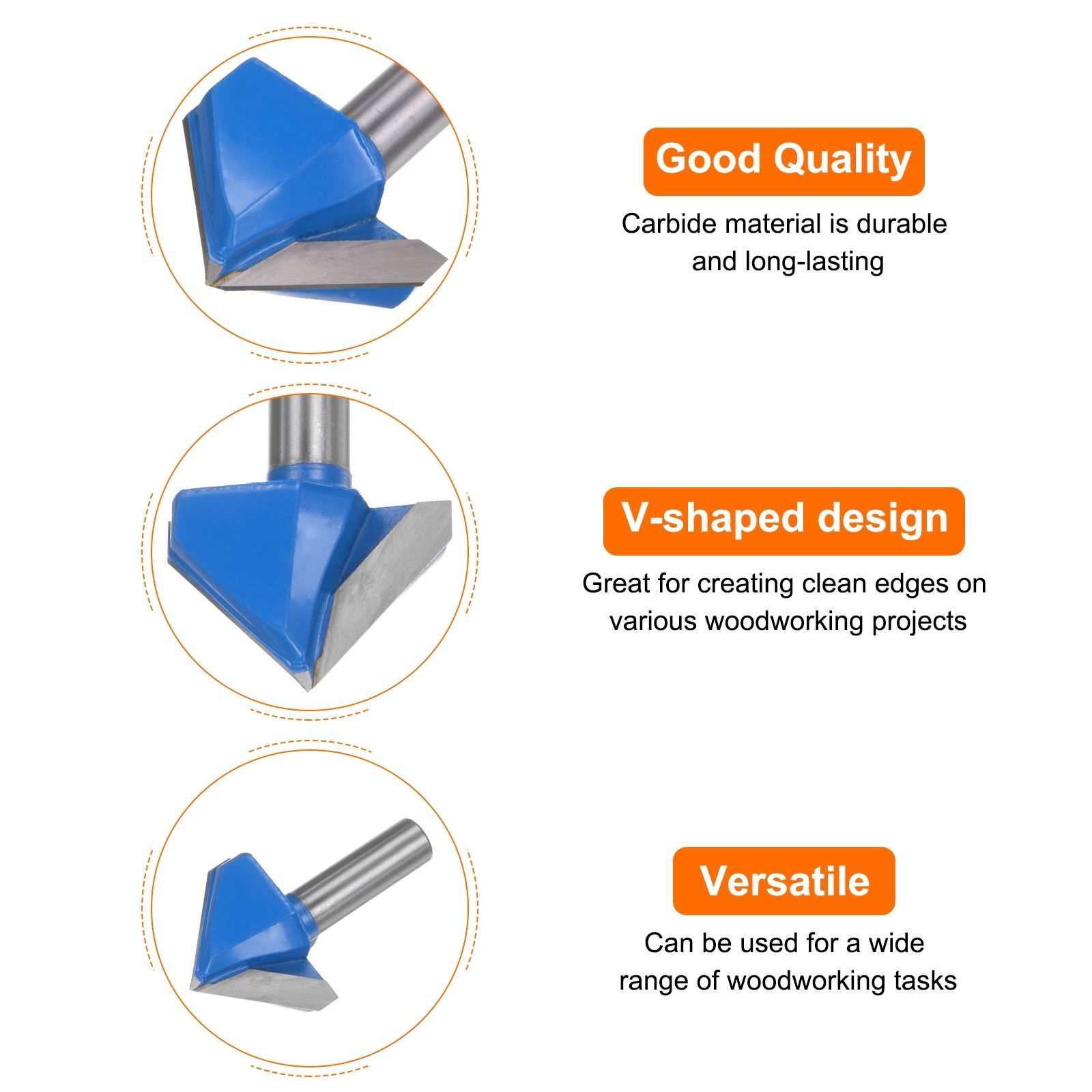特徴 - 90度V型エンドミルのデザインは鋭くてクリーンな切れ味を提供し、木工、大工、彫刻、エッジトリミング、切断作業に最適です。
