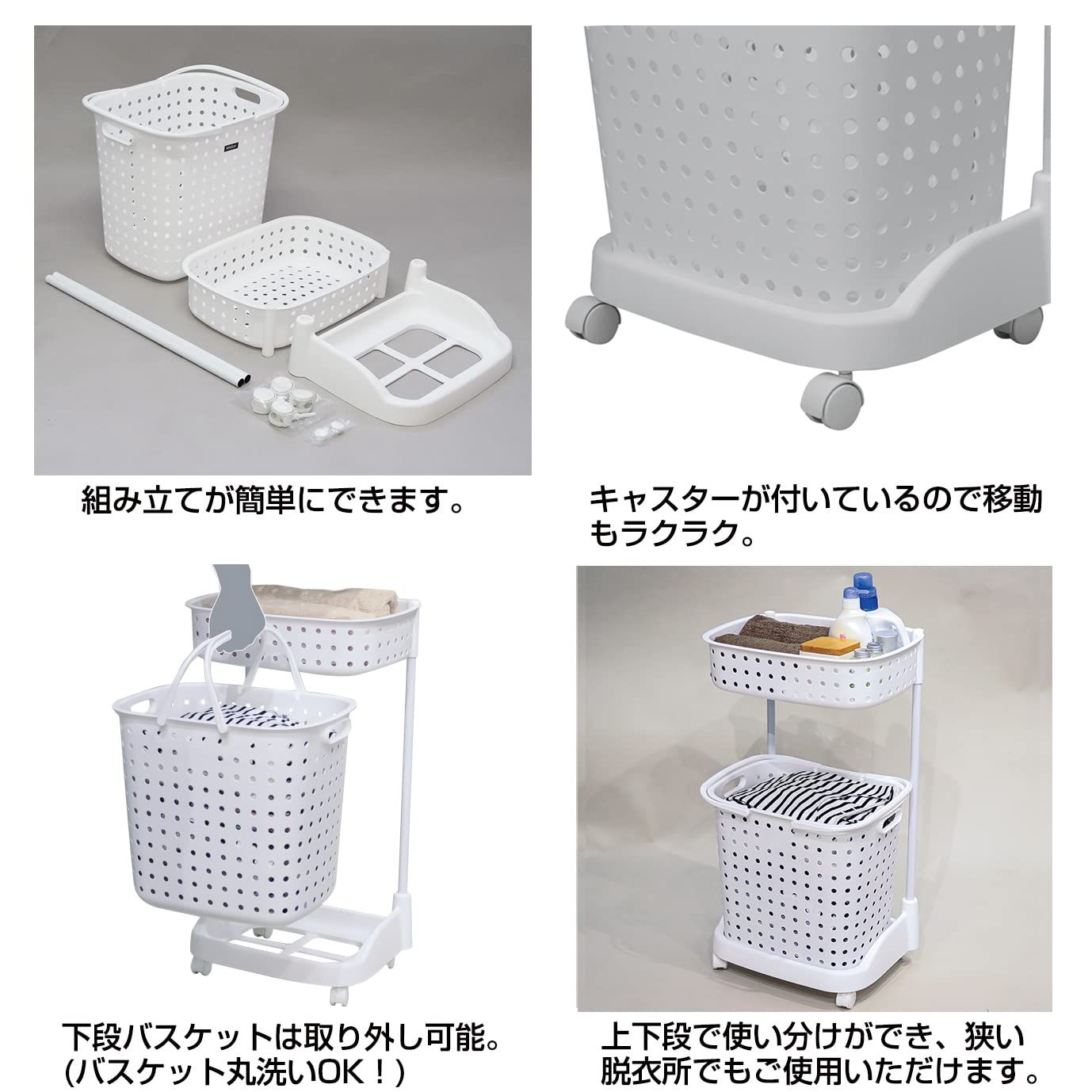 レクエアランドリーバスケット2段 ホワイト