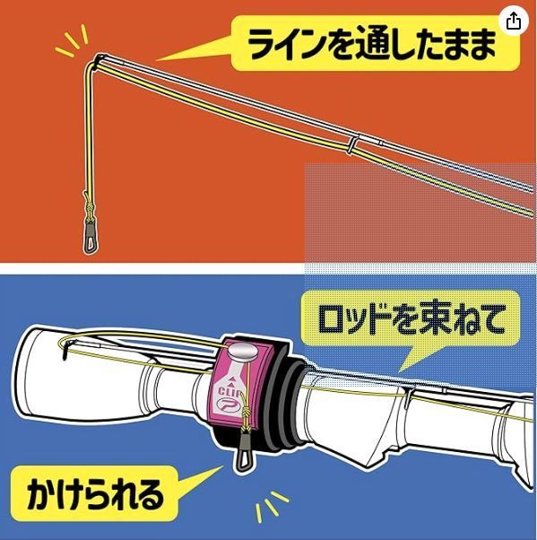 ●ロッドを束ねた後、ラインストッパーにラインを引っ掛けて使用。