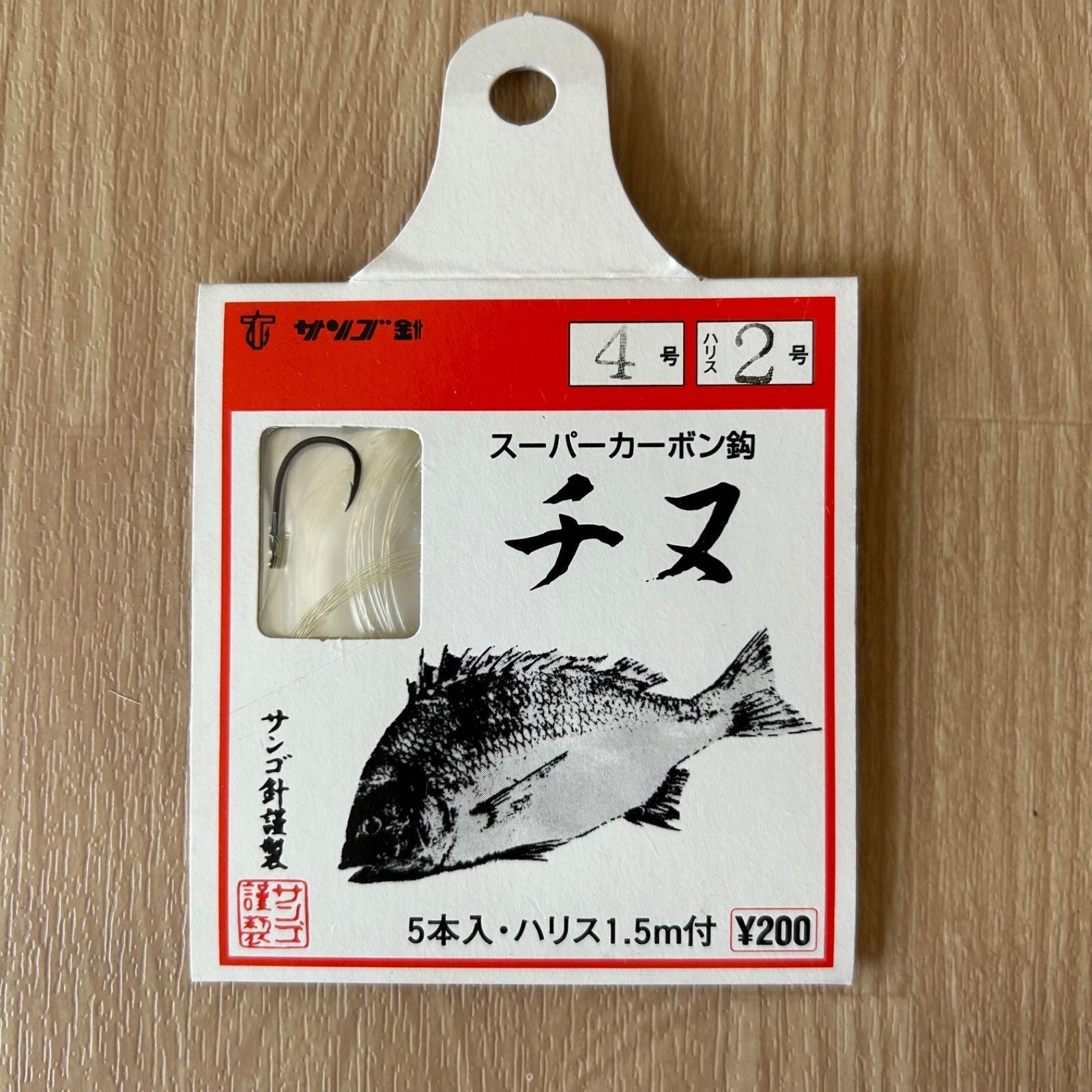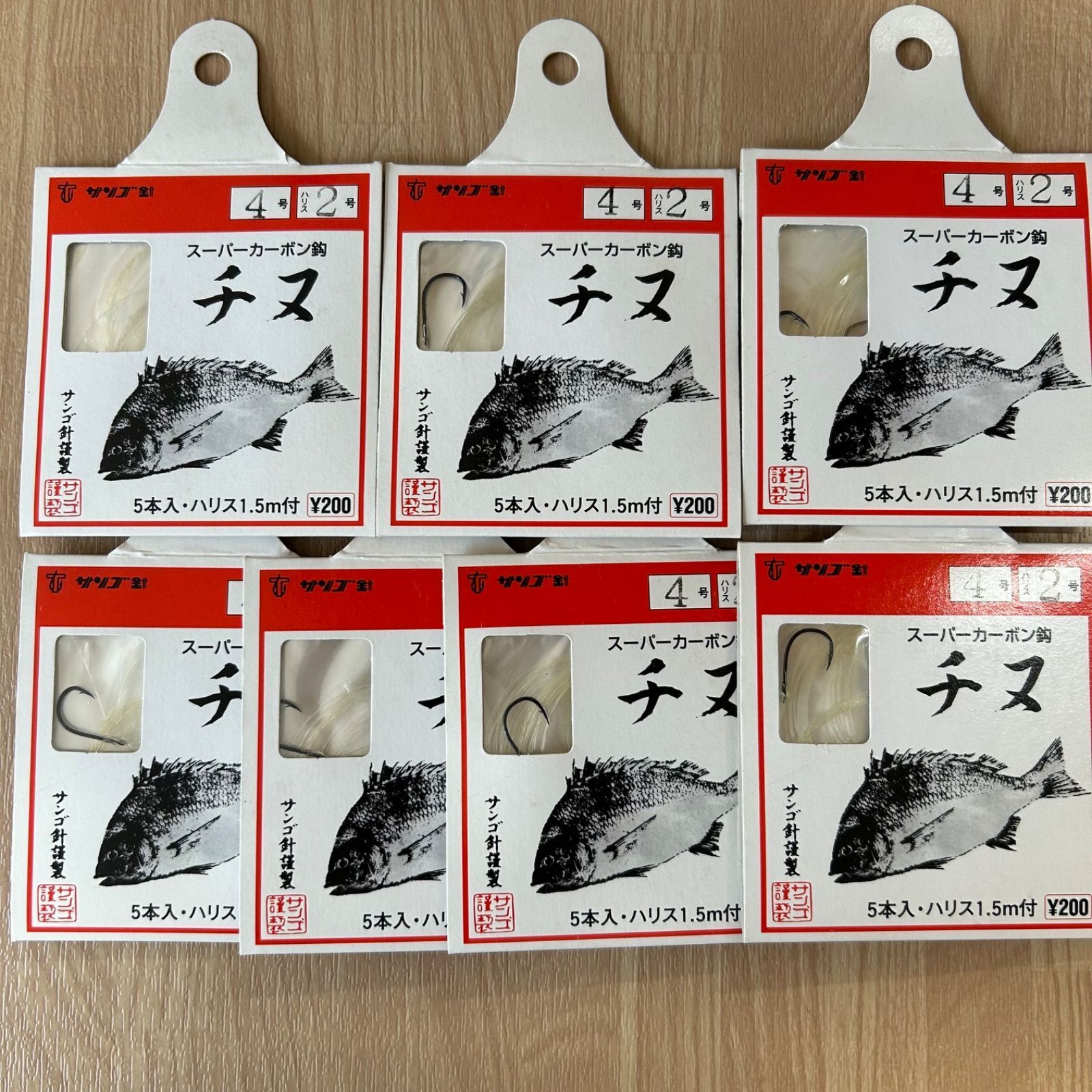 サンゴ針 チヌ スーパーカーボン鈎 4号 ハリス2号 5本入・ハリス1.5m付 7袋セット 釣り針 替針 釣り糸 釣具 まとめ売り 釣り引退セット ※1073