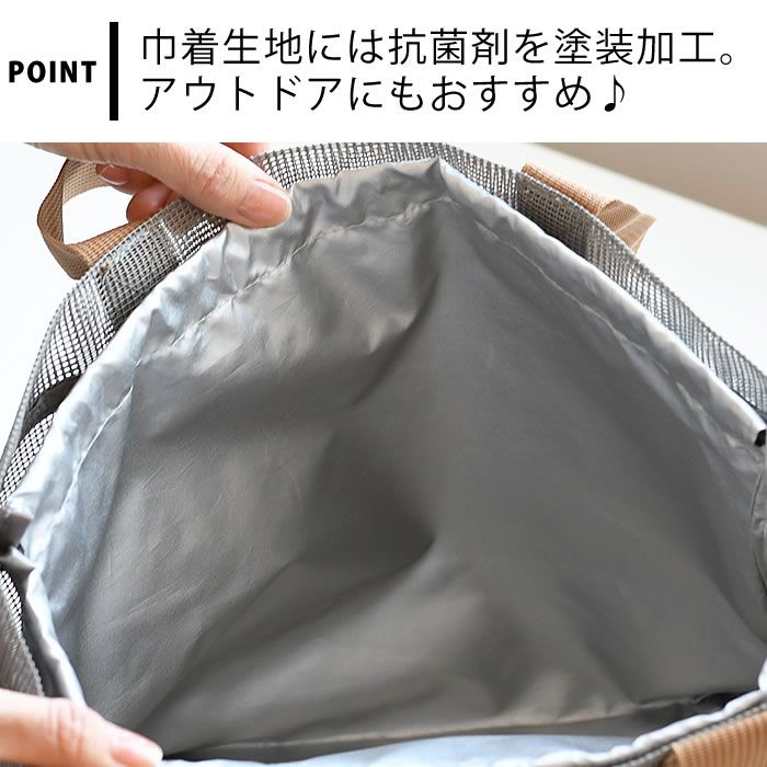 ポルターレ 抗菌巾着付きメッシュショルダー メッシュバッグ サブヒロモリ トートバッグ ショルダーバッグ おしゃれ ランチバッグ 抗菌 アウトドア シンプル ショッピングバッグ 軽量 ランチトート