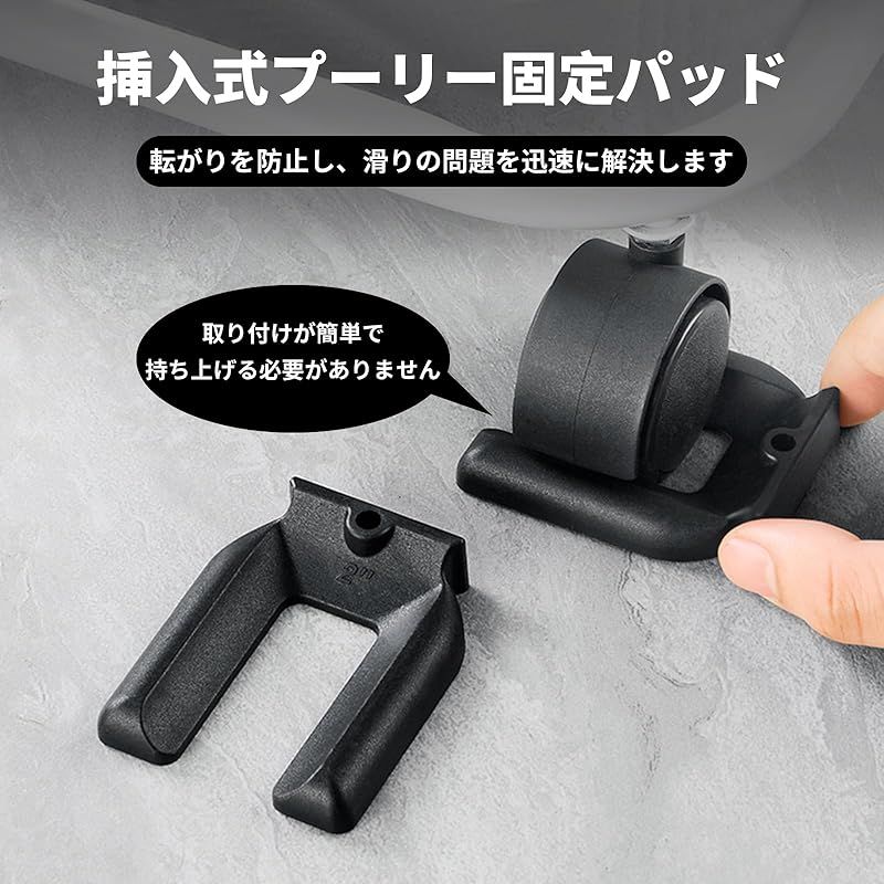 【簡単な取り付け】キャスター固定具は取り付けが簡単で、ボルト固定穴を利用して、簡単な操作で取り付けが可能です。複雑な工具は不要で、時間と労力を節約できます。
