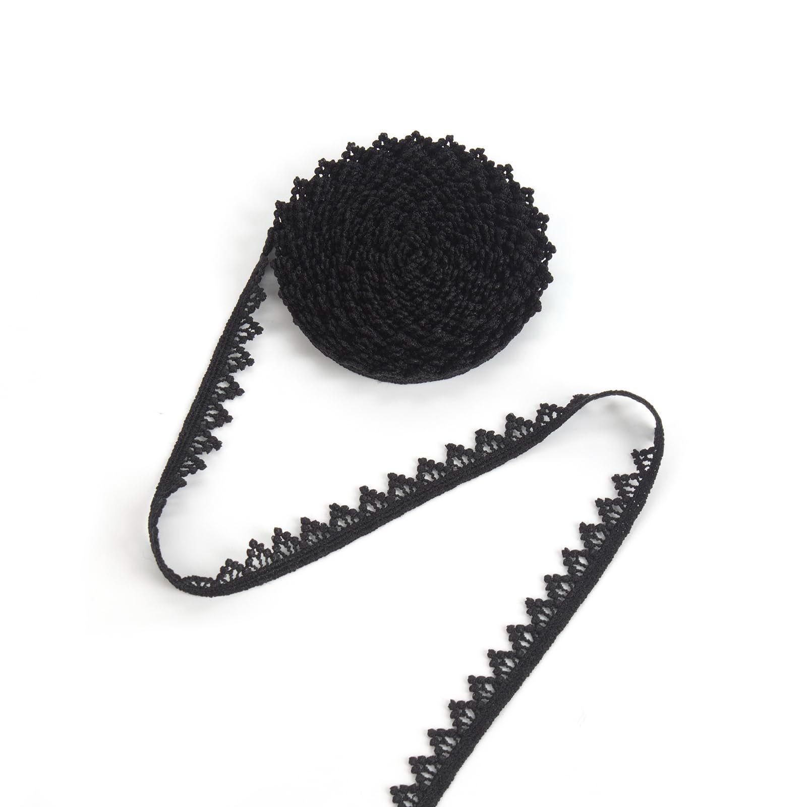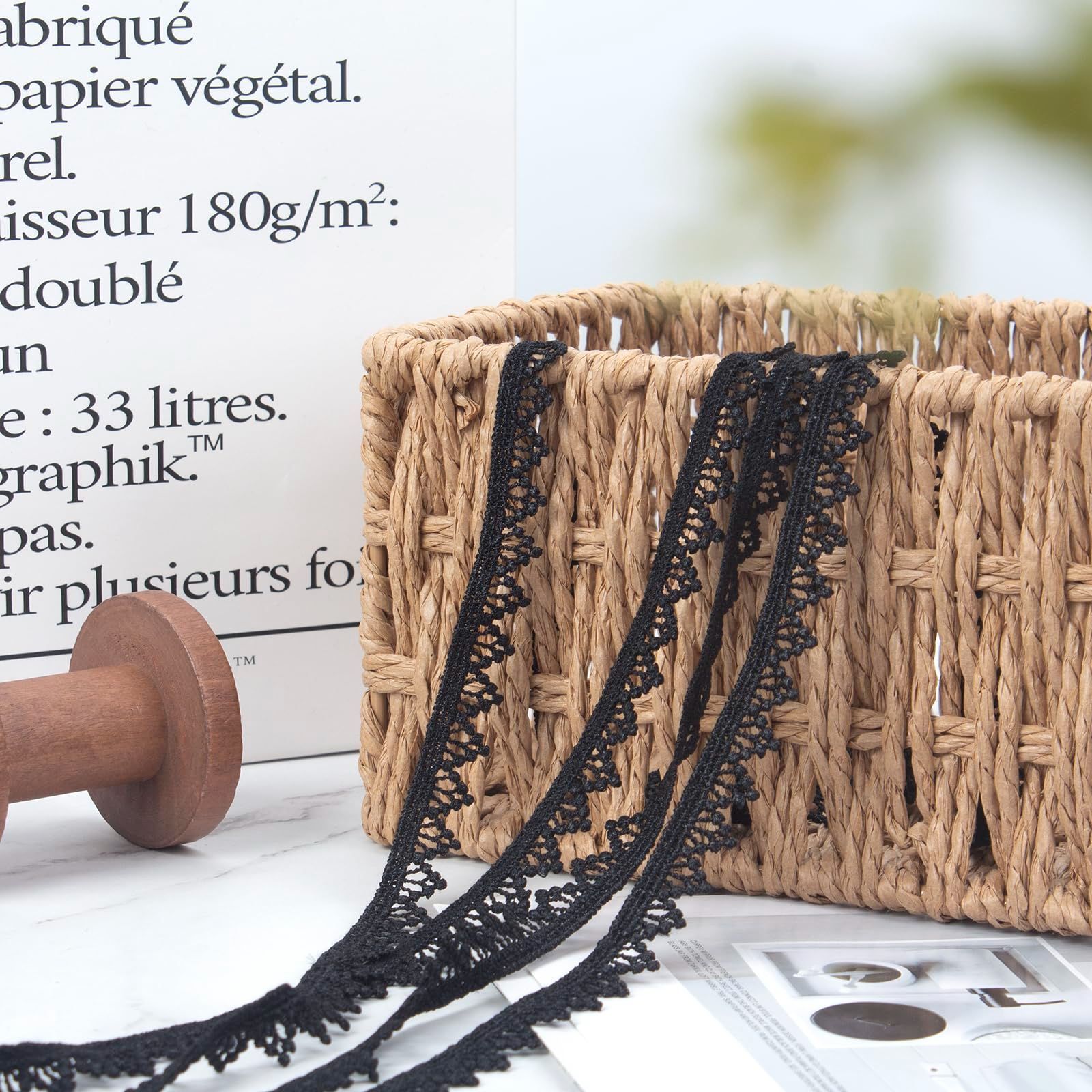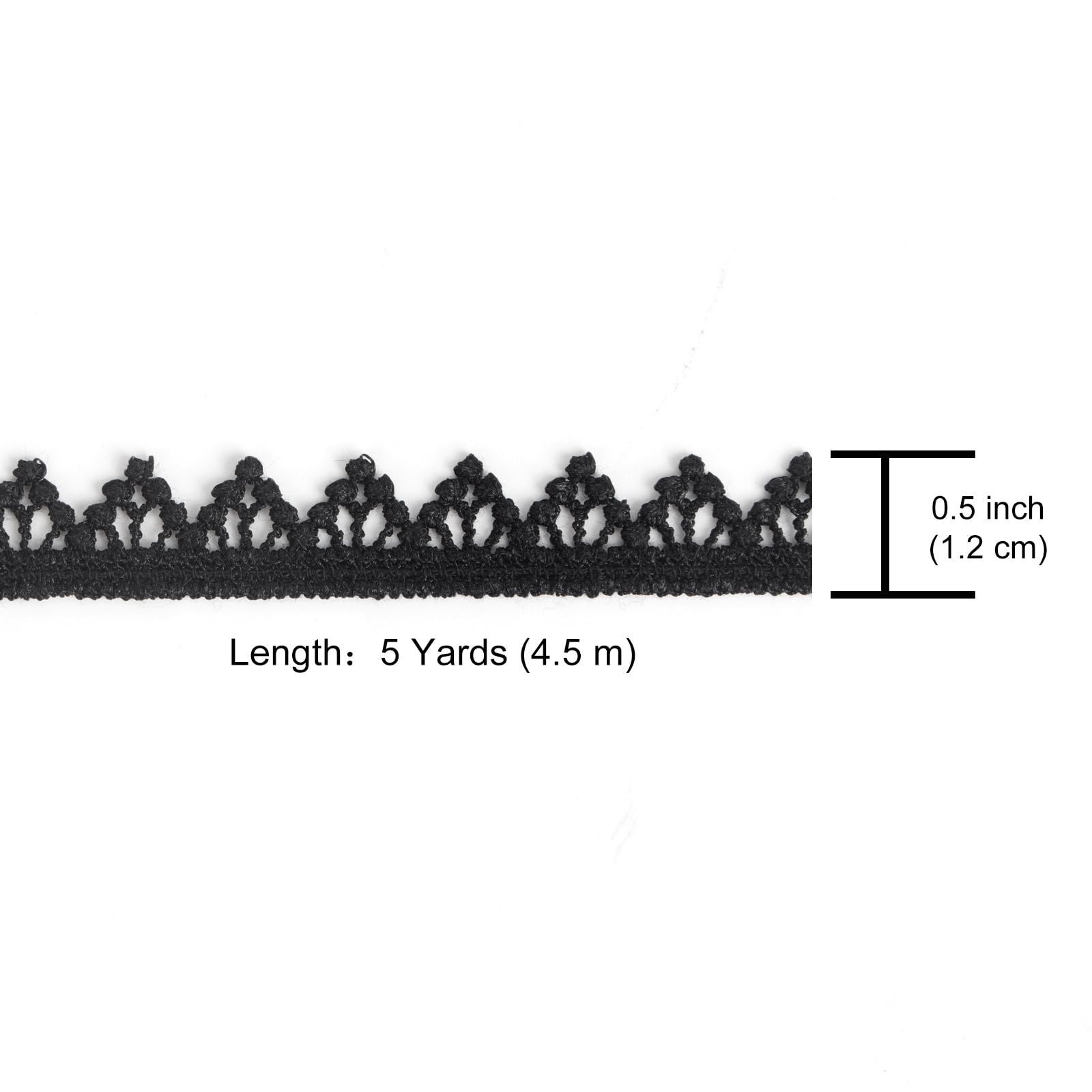 4.5m レースリボン トリム 飾り 刺繍 (#01 黒 4.5m)