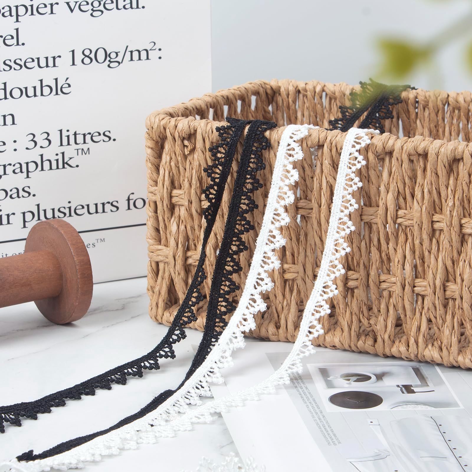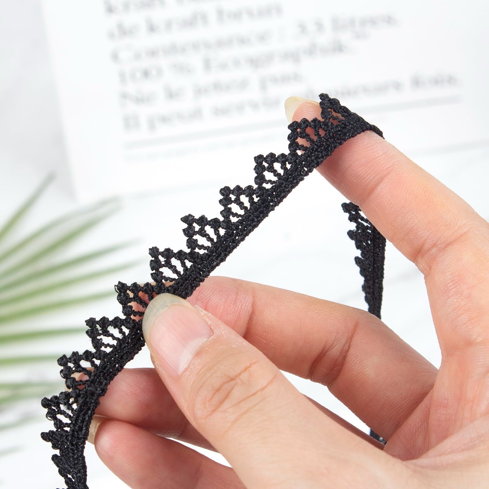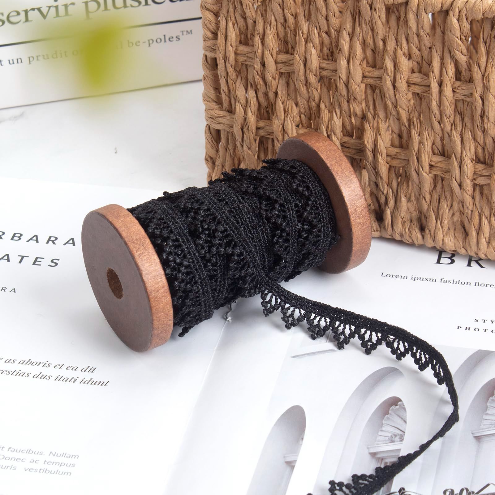 4.5m レースリボン トリム 飾り 刺繍 (#01 黒 4.5m)